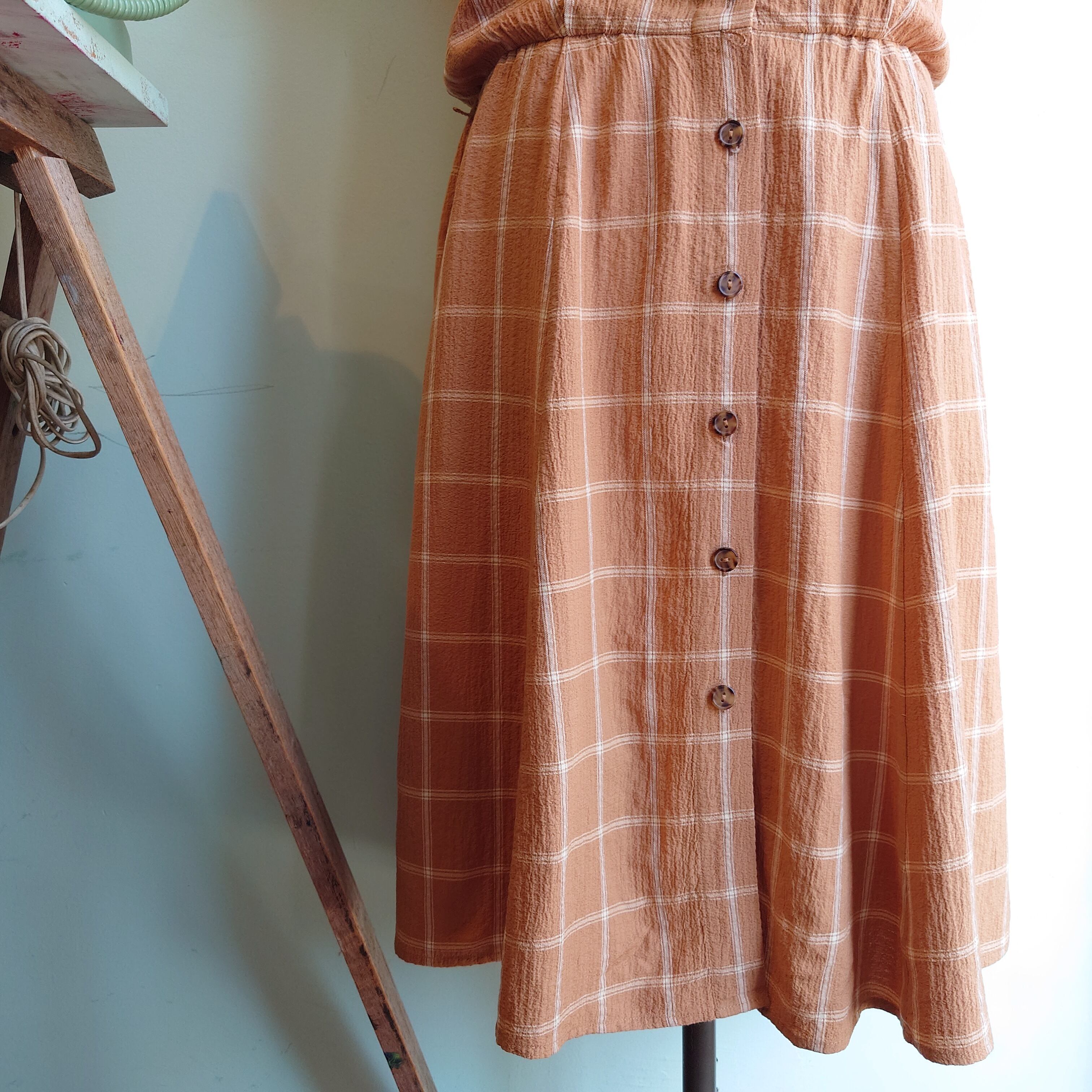 ◎CalvinKlein 00s チェックワンピース リネンライクドレス アンバー 8