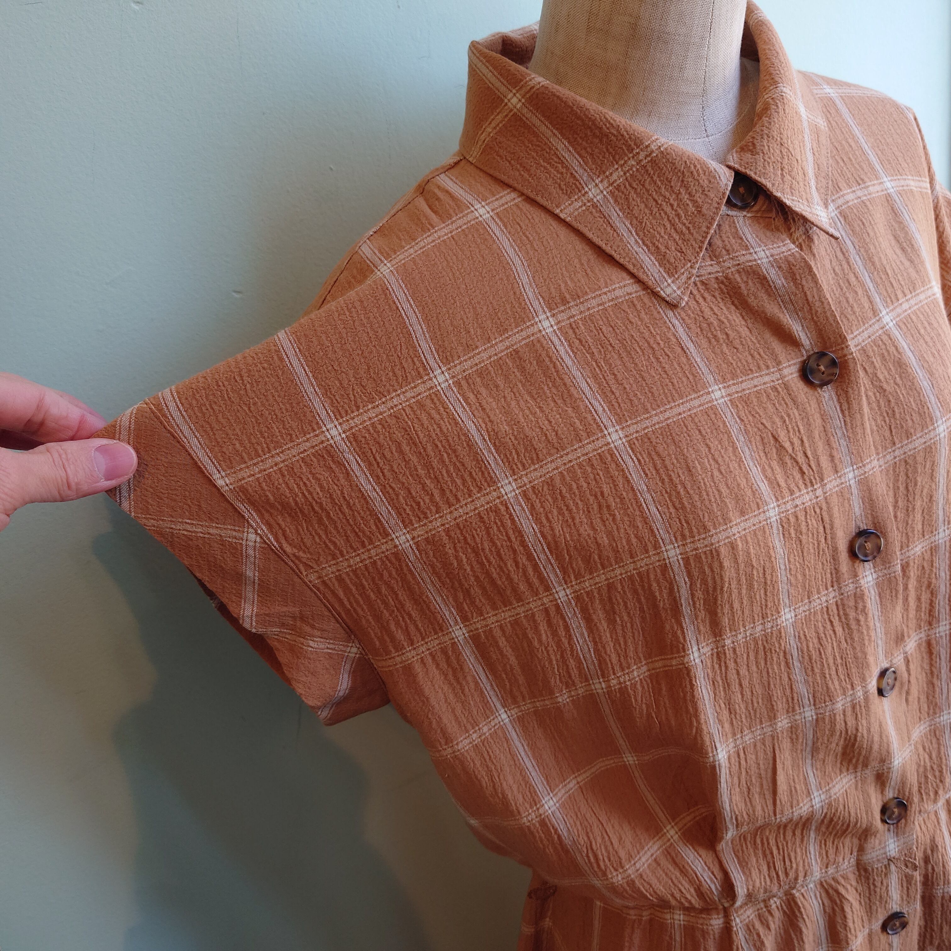 CalvinKlein 00s チェックワンピース リネンライクドレス アンバー 8