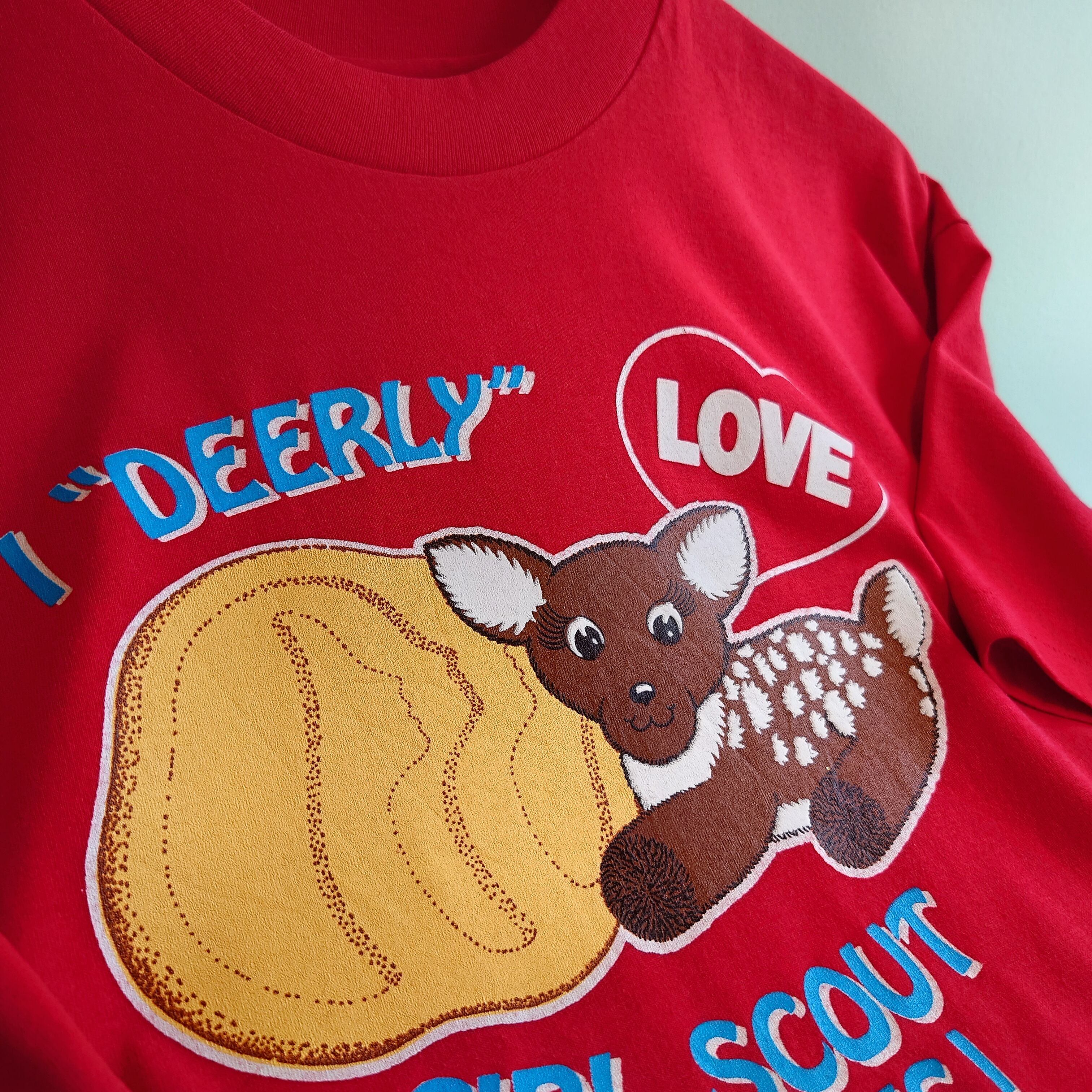 deerly 90s vintage ヴィンテージTシャツ ガールスカウトTシャツ アニマル 子鹿 赤 シングルステッチ