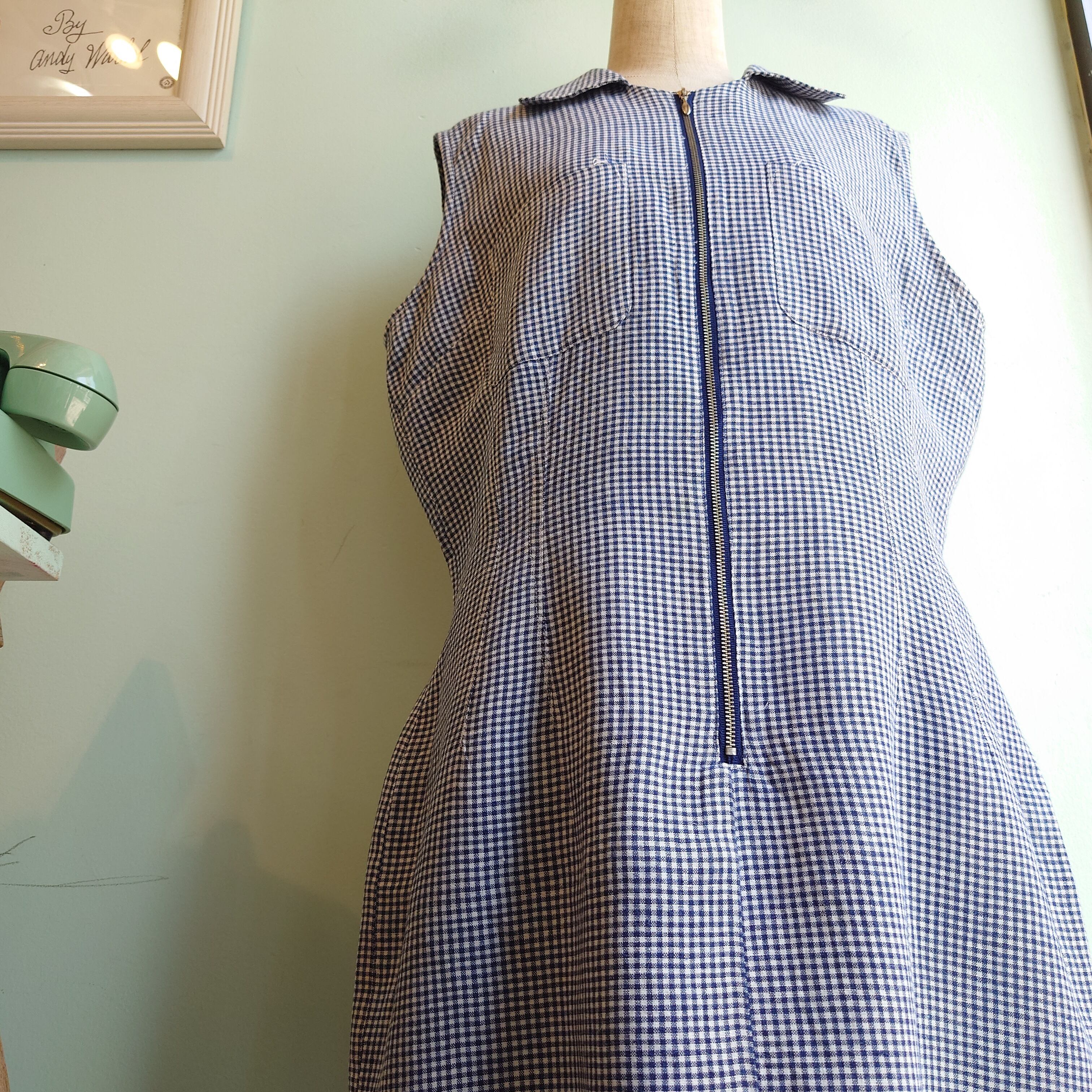 mobility 90-00s vintage ジップドレス チェックワンピース ノースリーブドレス ギンガムチェック