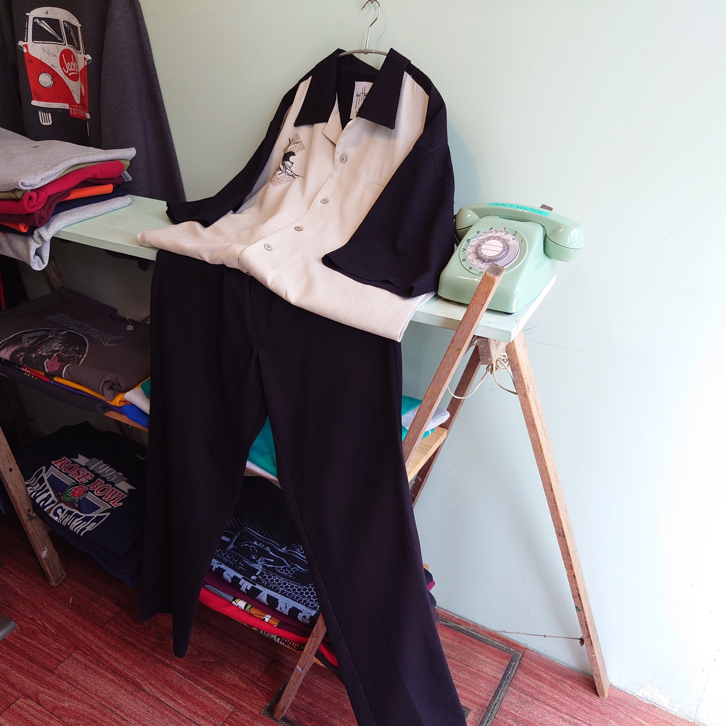 ◎GUYHARVEY AFICO 90-00s カジノシャツ フィッシングシャツ 黒白 モノトーン L