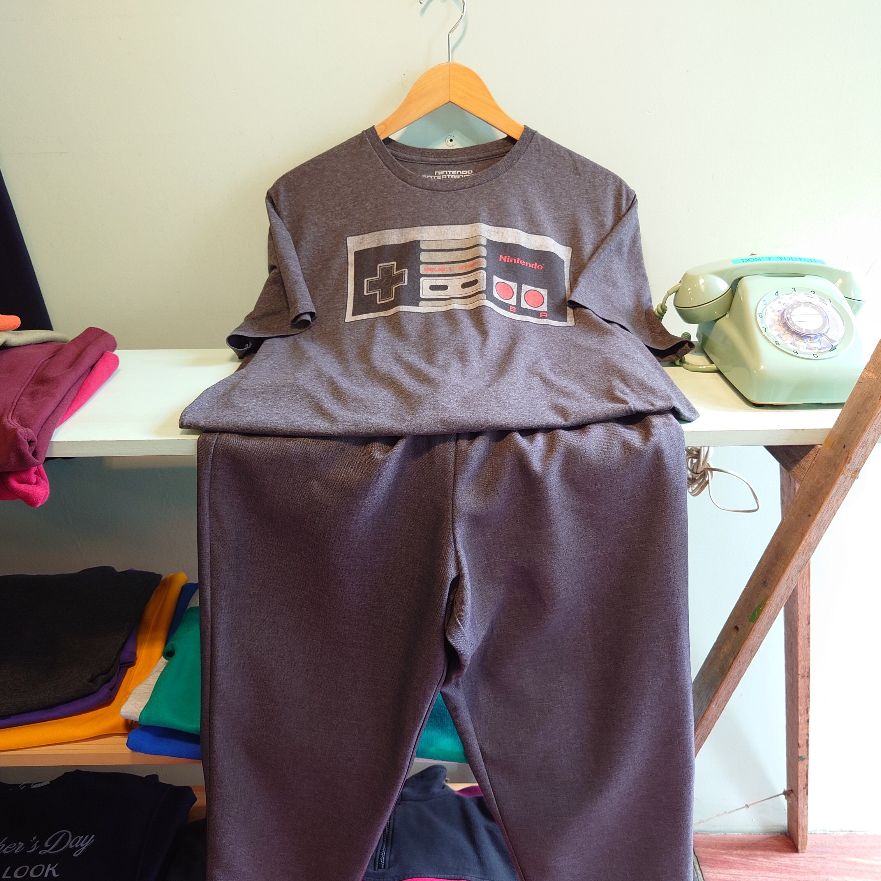 nintendo entertainment system 任天堂 レトロゲームモチーフ グラフィックTシャツ ロゴTシャツ ダークグレー L