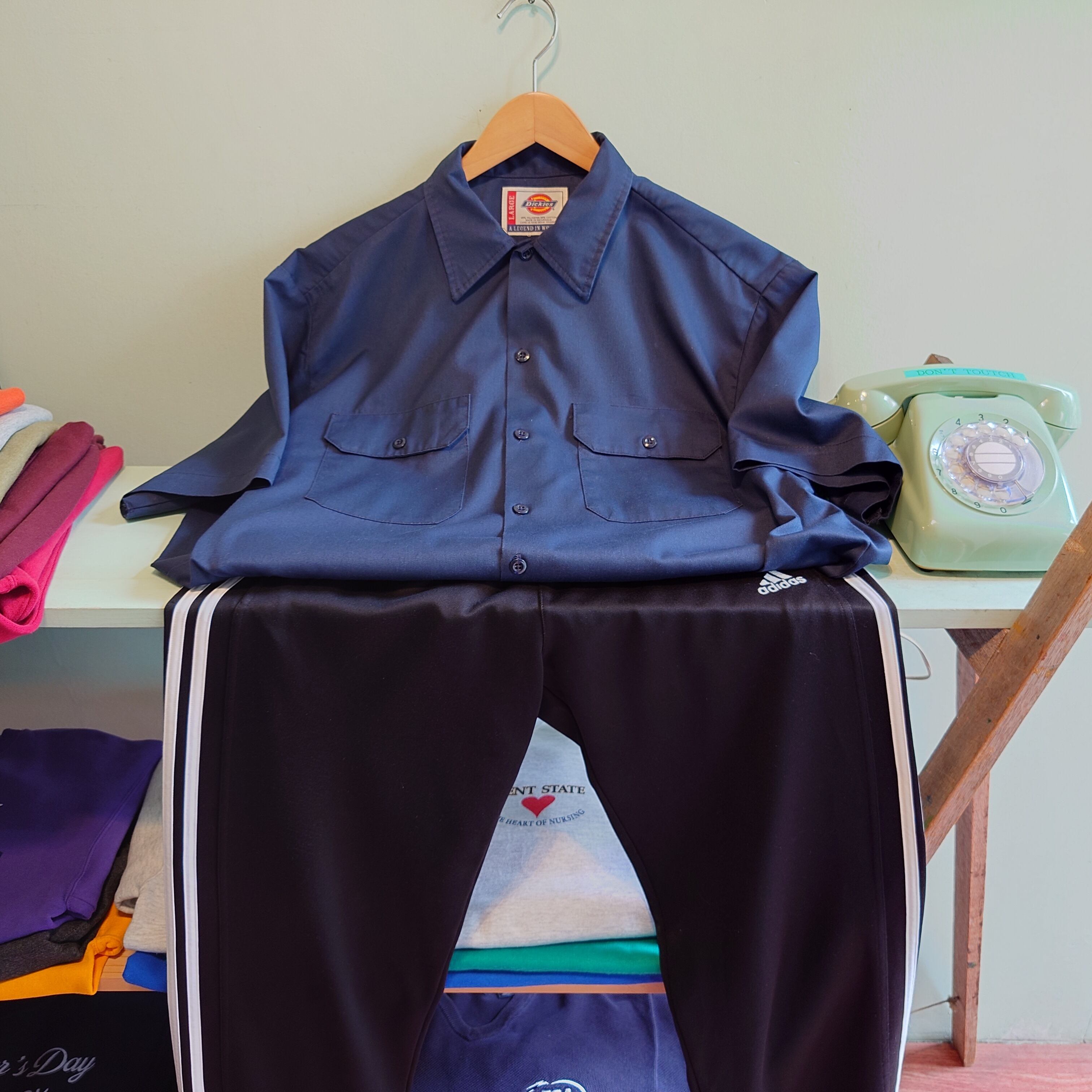 ◎Dickies ワークシャツ ボックスシャツ ネイビー 紺 L