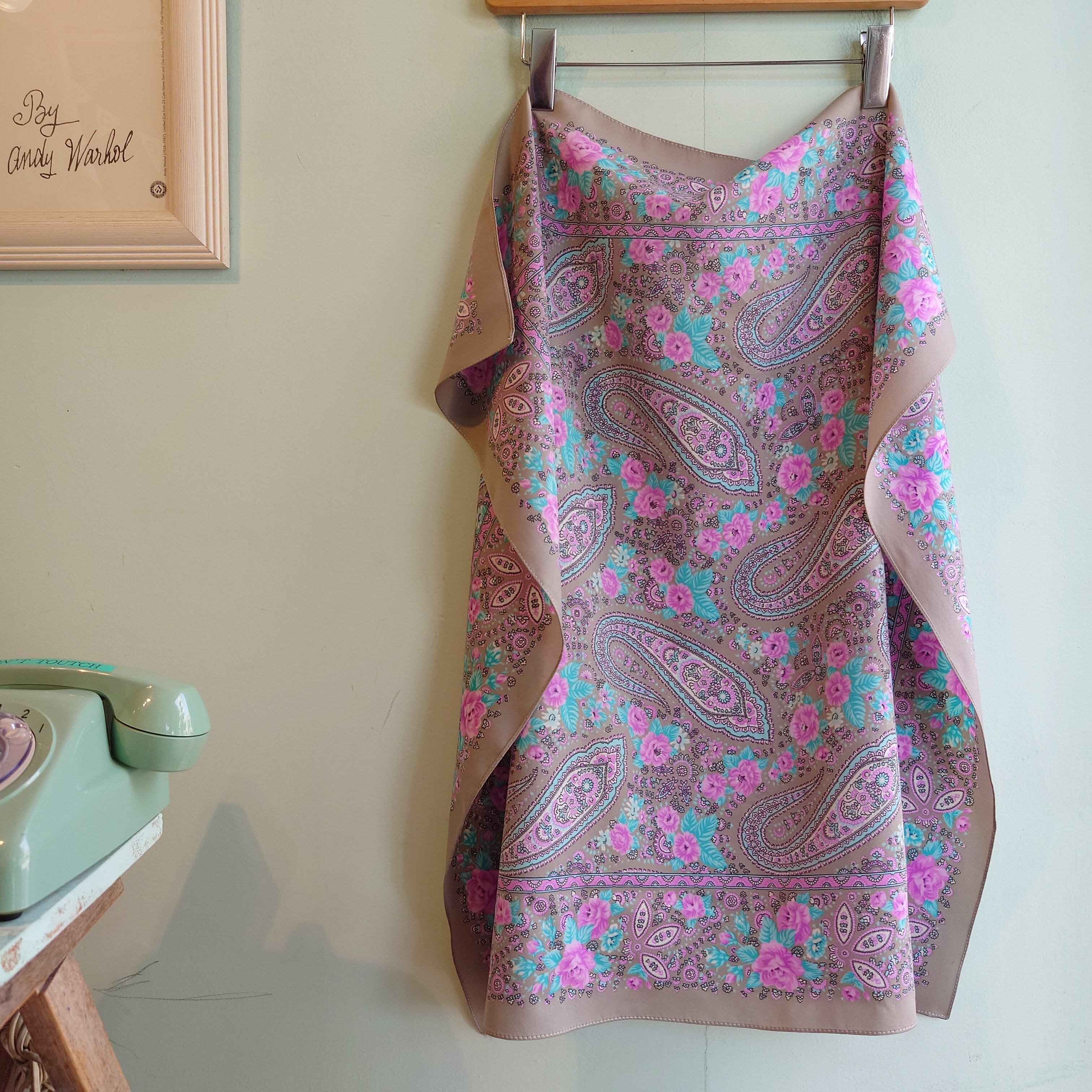 ◎〜90s オールドスカーフ ペイズリー柄スカーフ 総柄 バンダナライク グレー