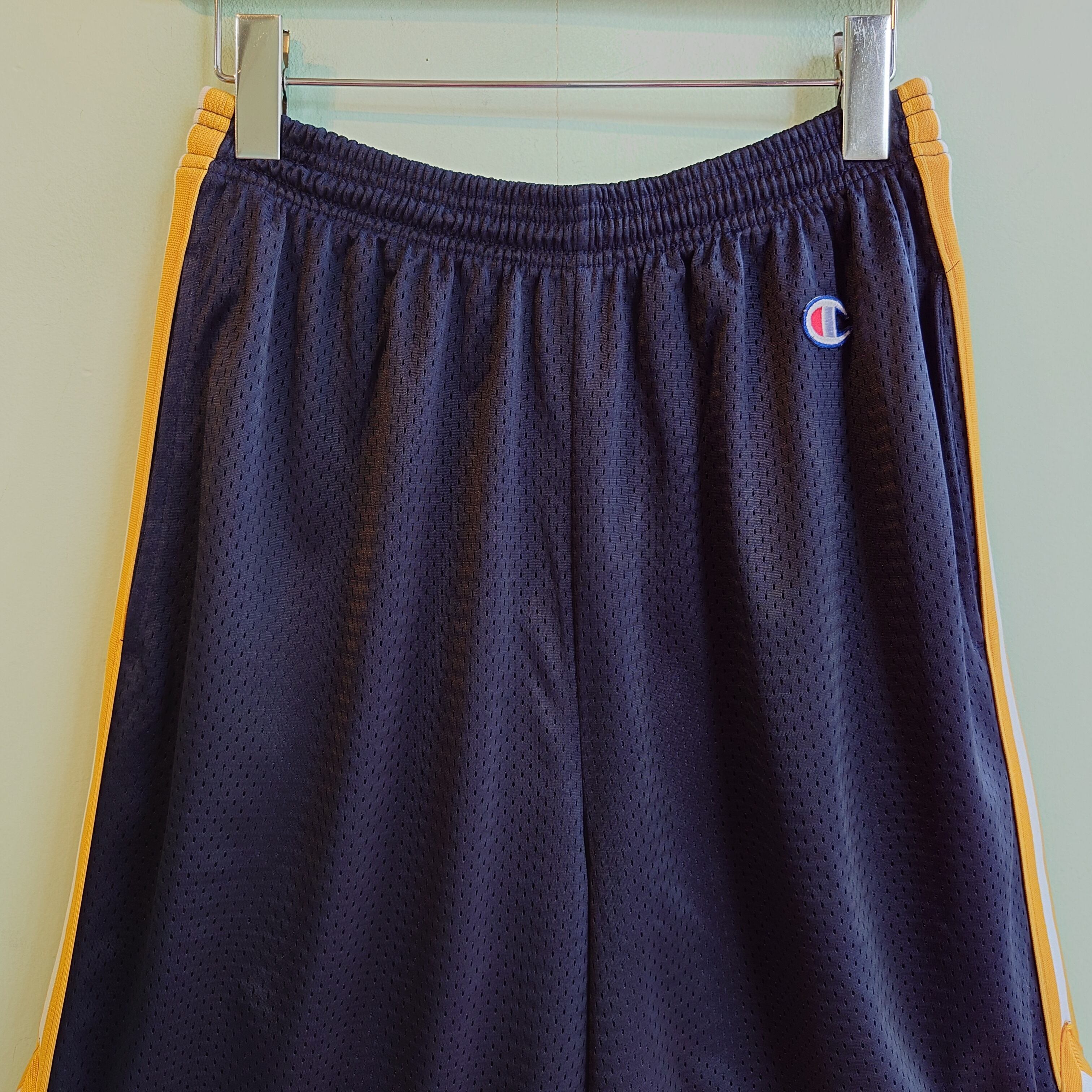 Champion 00s スポーツショーツ メッシュショーツ サイドラインショーツ ネイビー×イエロー L