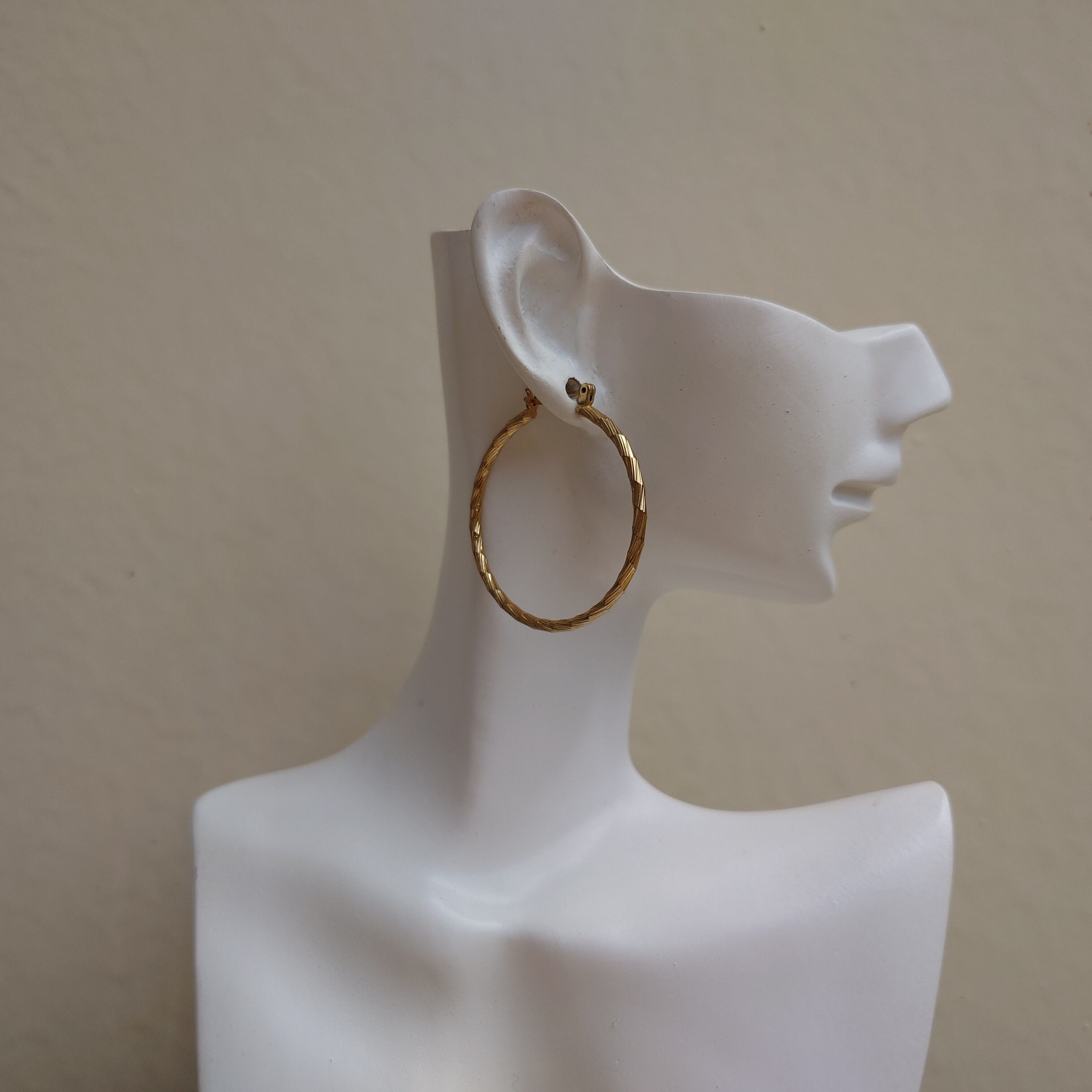 ねじり模様のフープピアス。パーティーにはもちろん、デイリーづかいにも重宝しそうです。