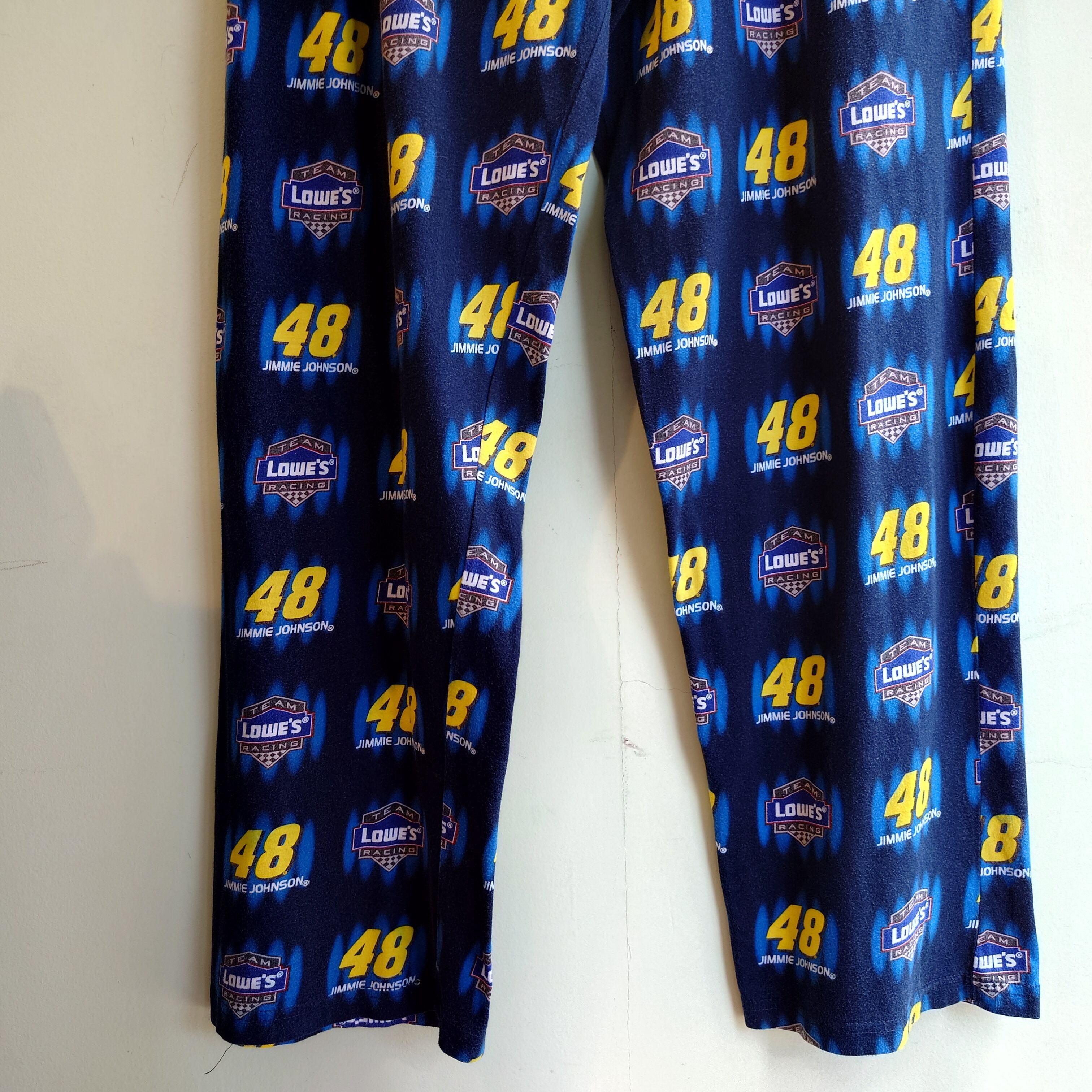 米ホームセンター、ロウズとレーシングドライバー、ジミー・ジョンソンのダブルネーム的な総柄イージーパンツ。レーシング系の臨場感と、企業ロゴの古着らしさ、どちらも併せ持った一本。テロッとしたカットソー系素材で夏もOK、ゆるっと履けるシルエットです。