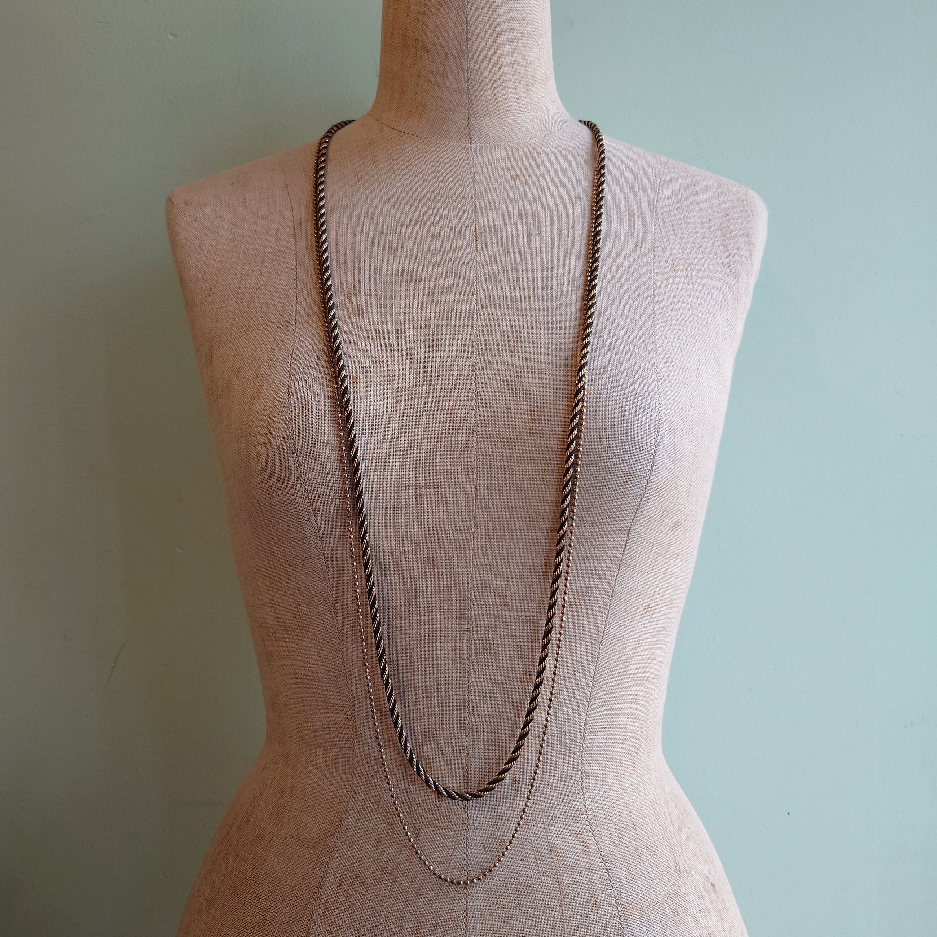 ~00s 古着雑貨 コンビネーションネックレス ボールチェーン ツイスト ゴールド