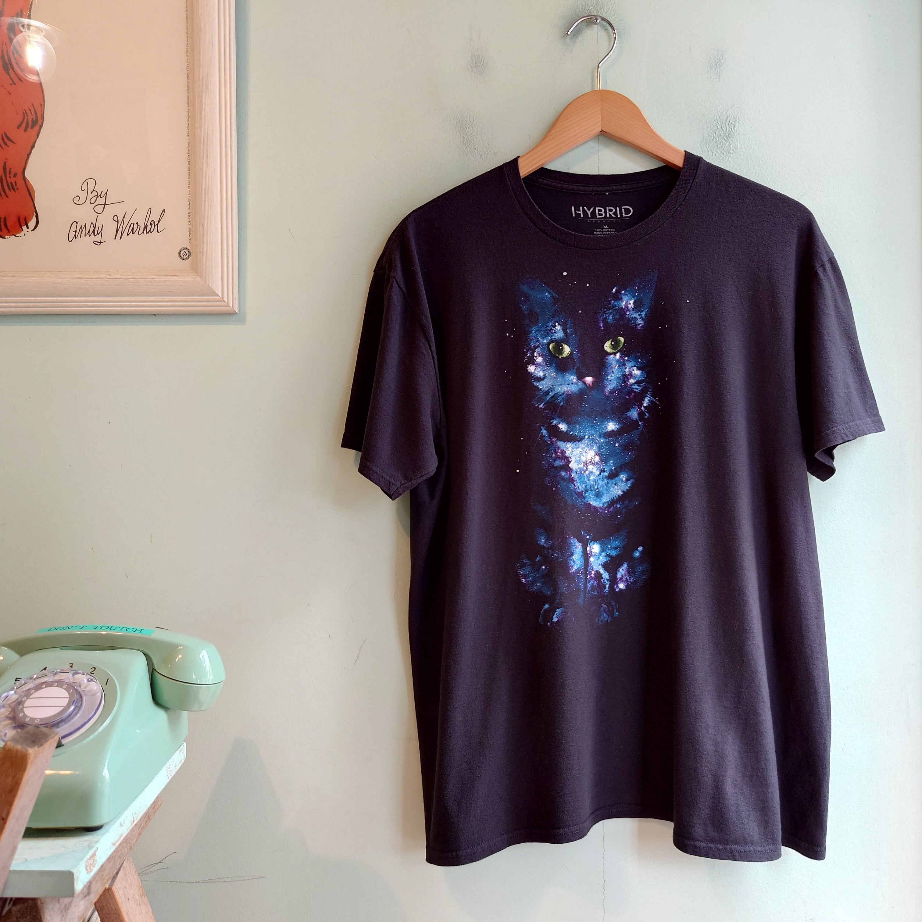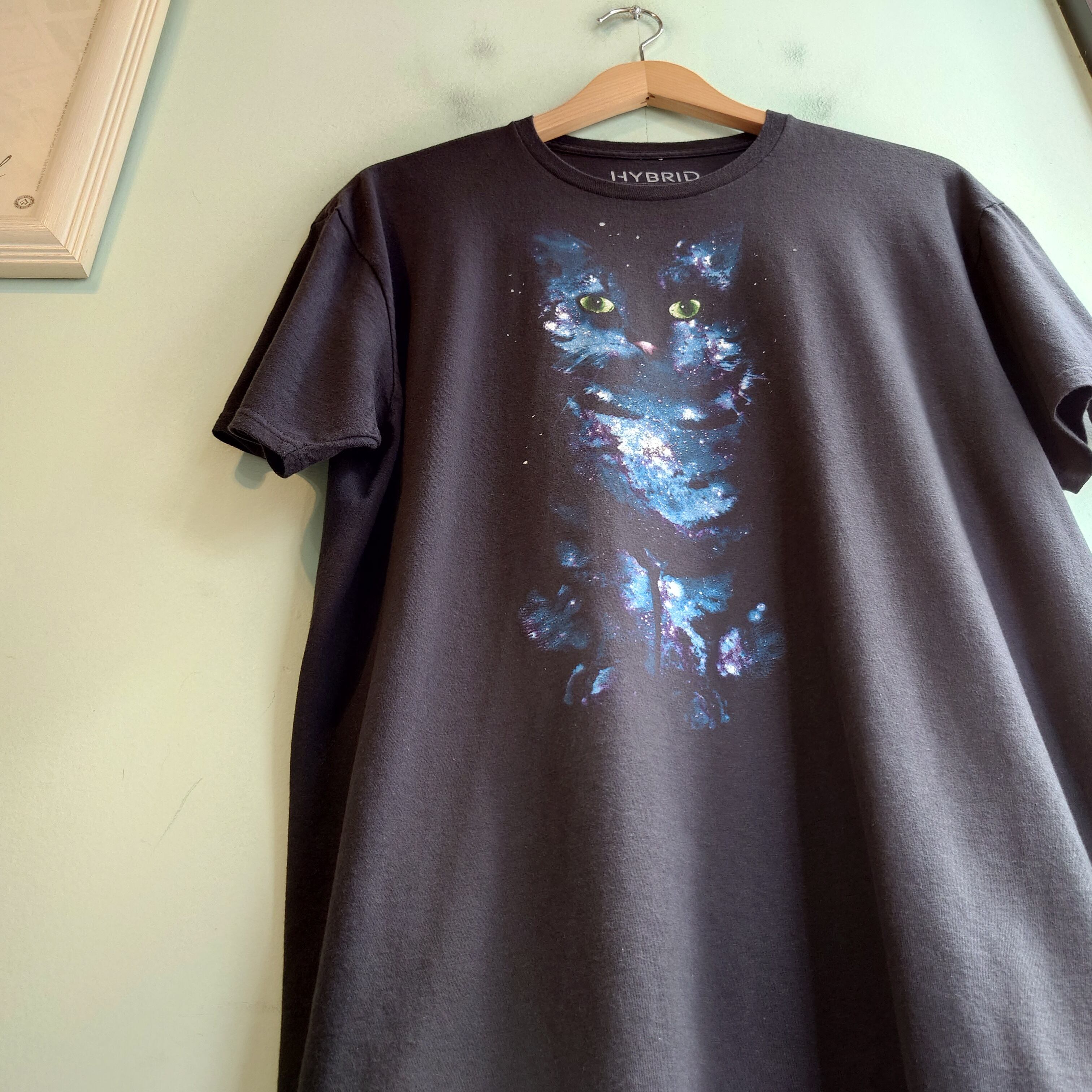 hybrid 00s アニマルTシャツ グラフィックTシャツ 天の川 猫 黒 XL