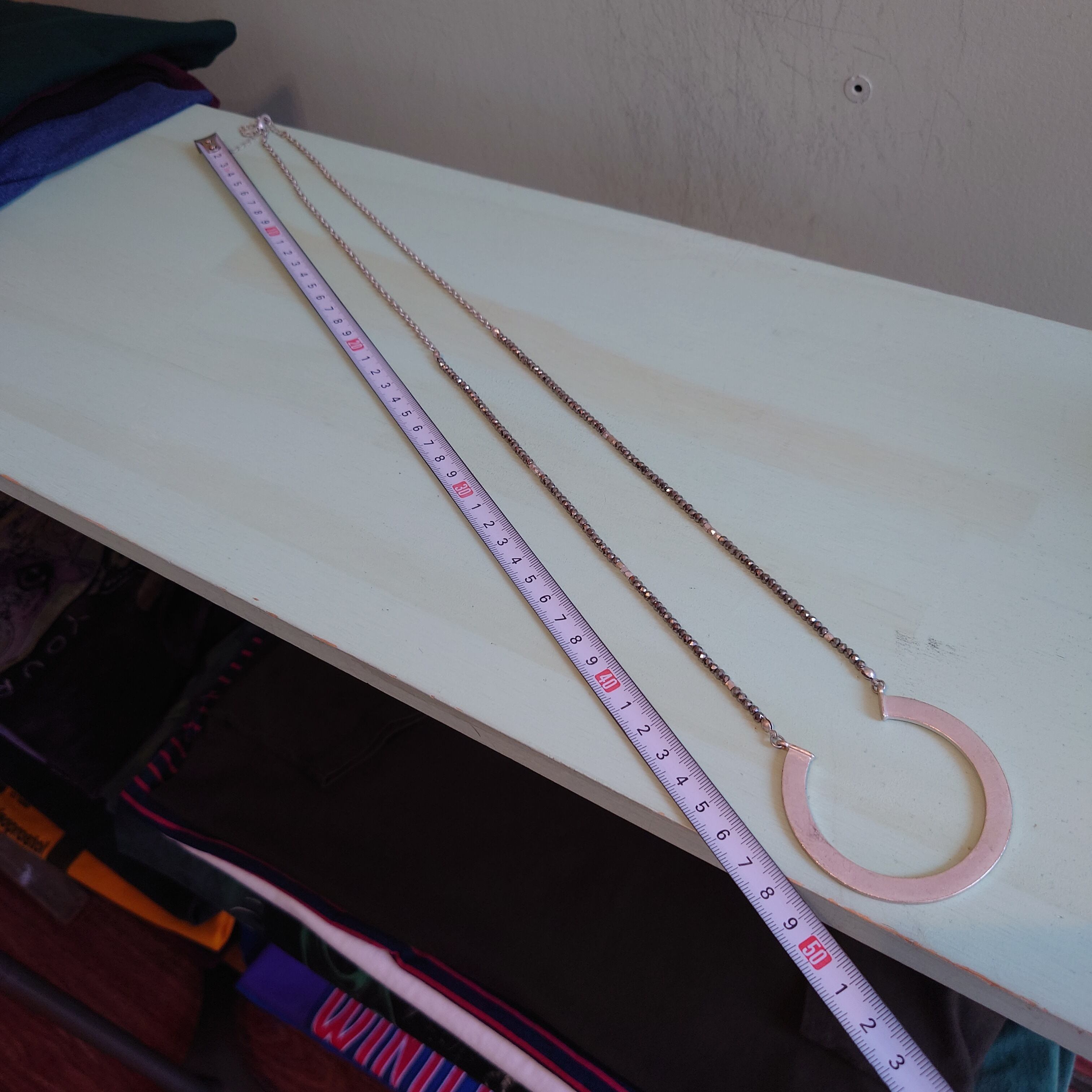 近代アートの彫刻のような雰囲気が漂う、馬蹄型のフープがついたネックレス。チェーン部分もストーン系との切り替えがあり、飽きさせないデザイン。長めなシルエットもスタイリッシュ。ユニセックスで味わいのある首飾りをお探しのお客様へ。