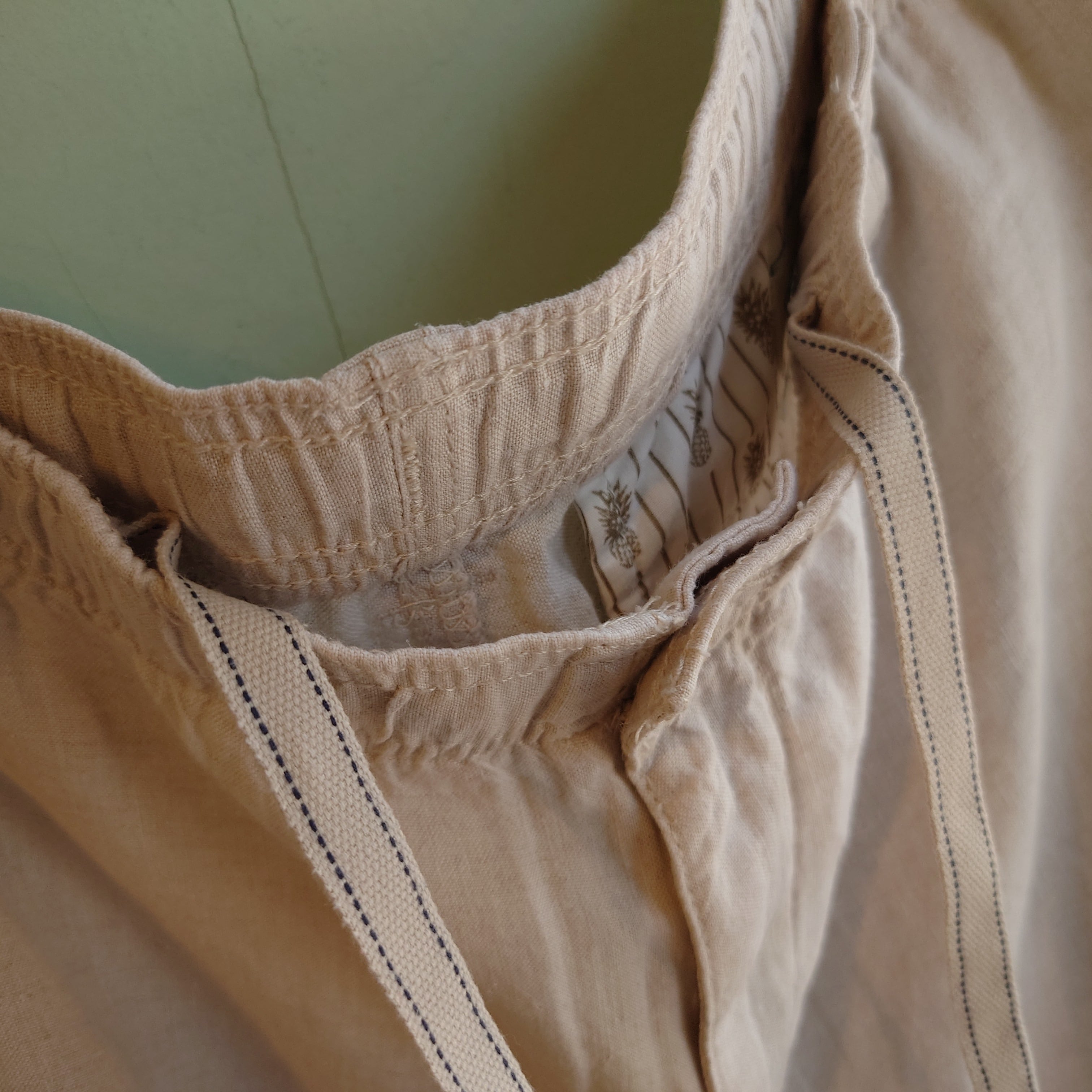 ※ウエストは内側の紐で絞り込めます。ゴム仕様ですが、プラス方向には10センチ弱伸びる程度となります。ベルトループもあり。