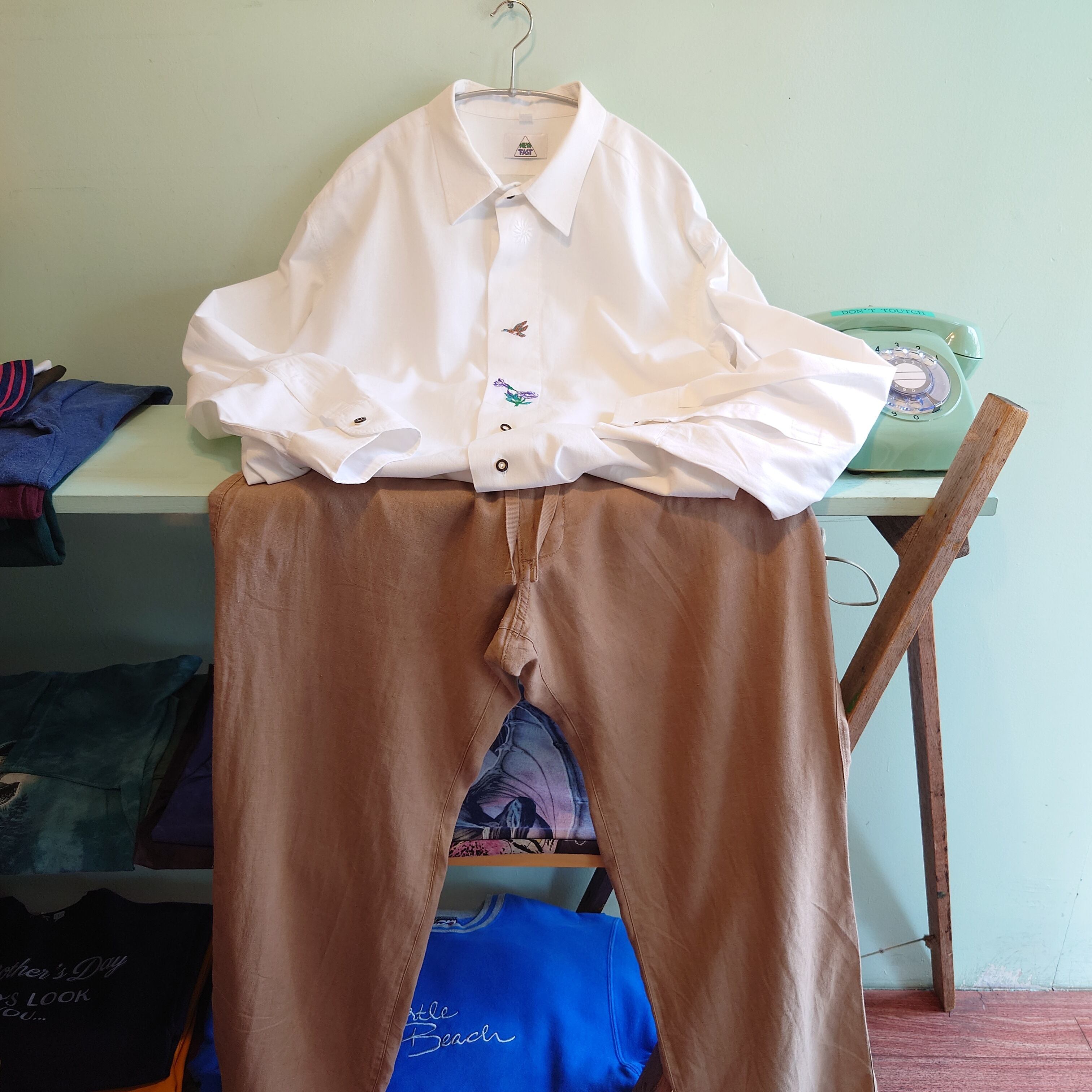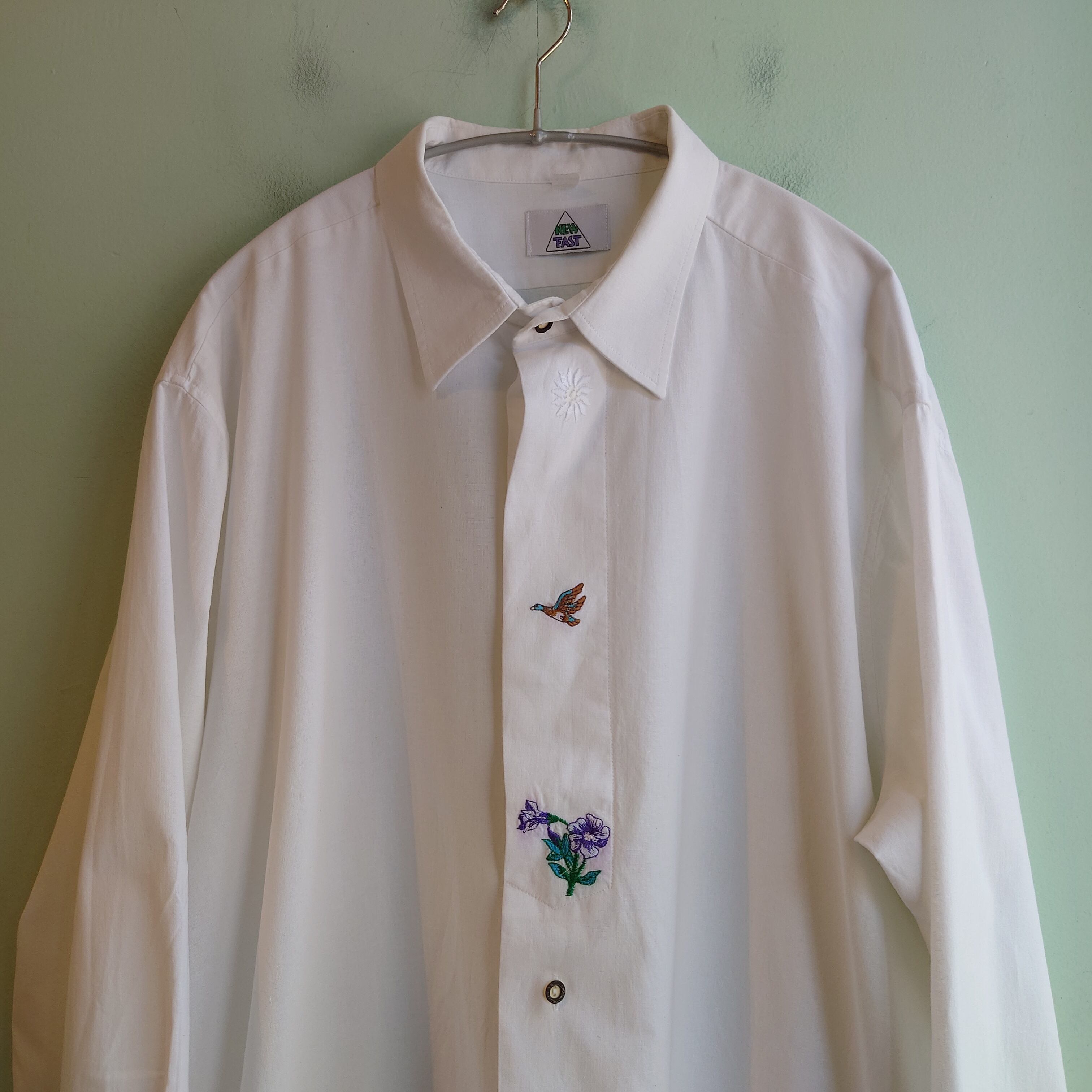 NEWFAST -00s ユーロオールド チロルシャツ チロリアンシャツ 白 ホワイト XXL