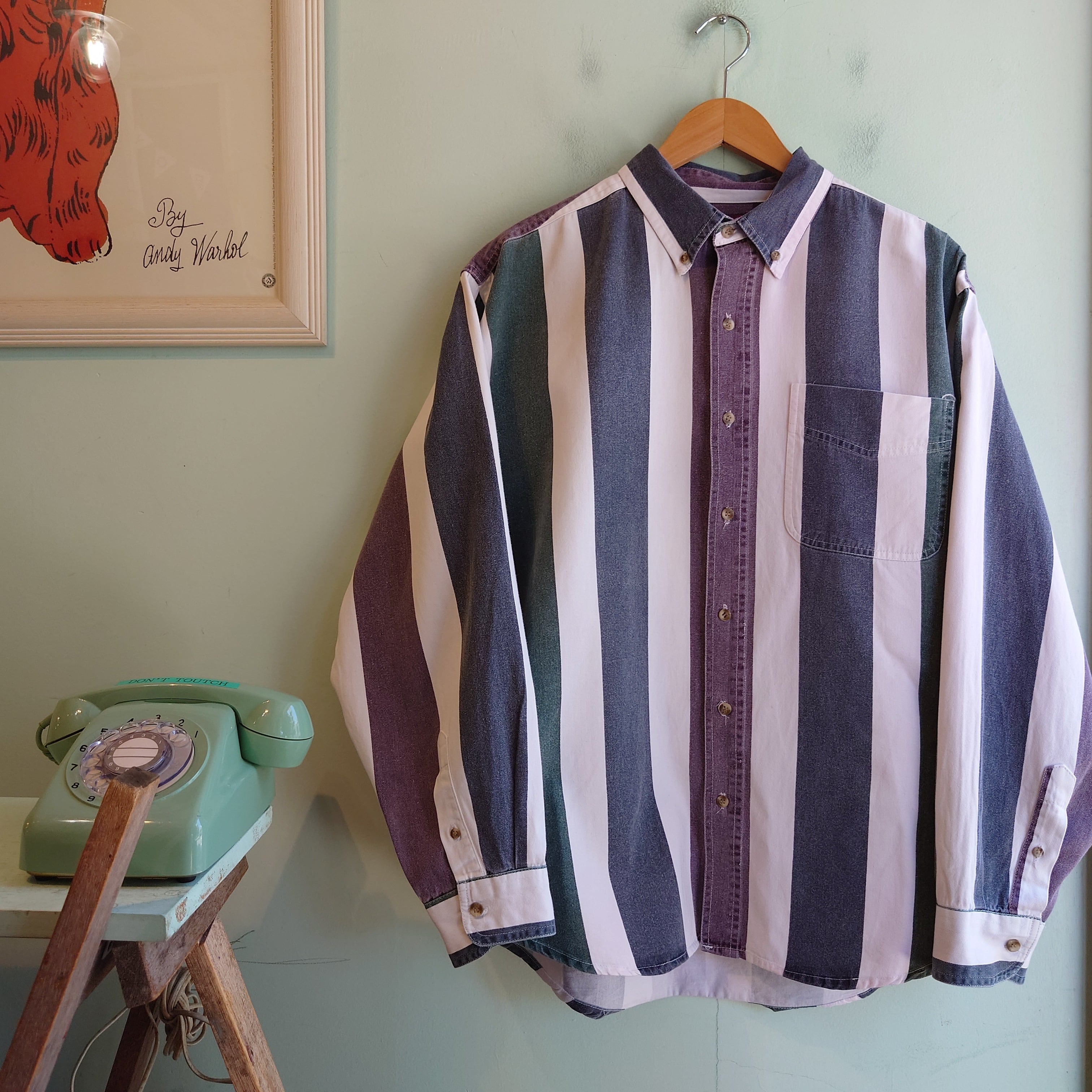 COLISEUM ~90s vintage ストライプシャツ マルチカラーシャツ L