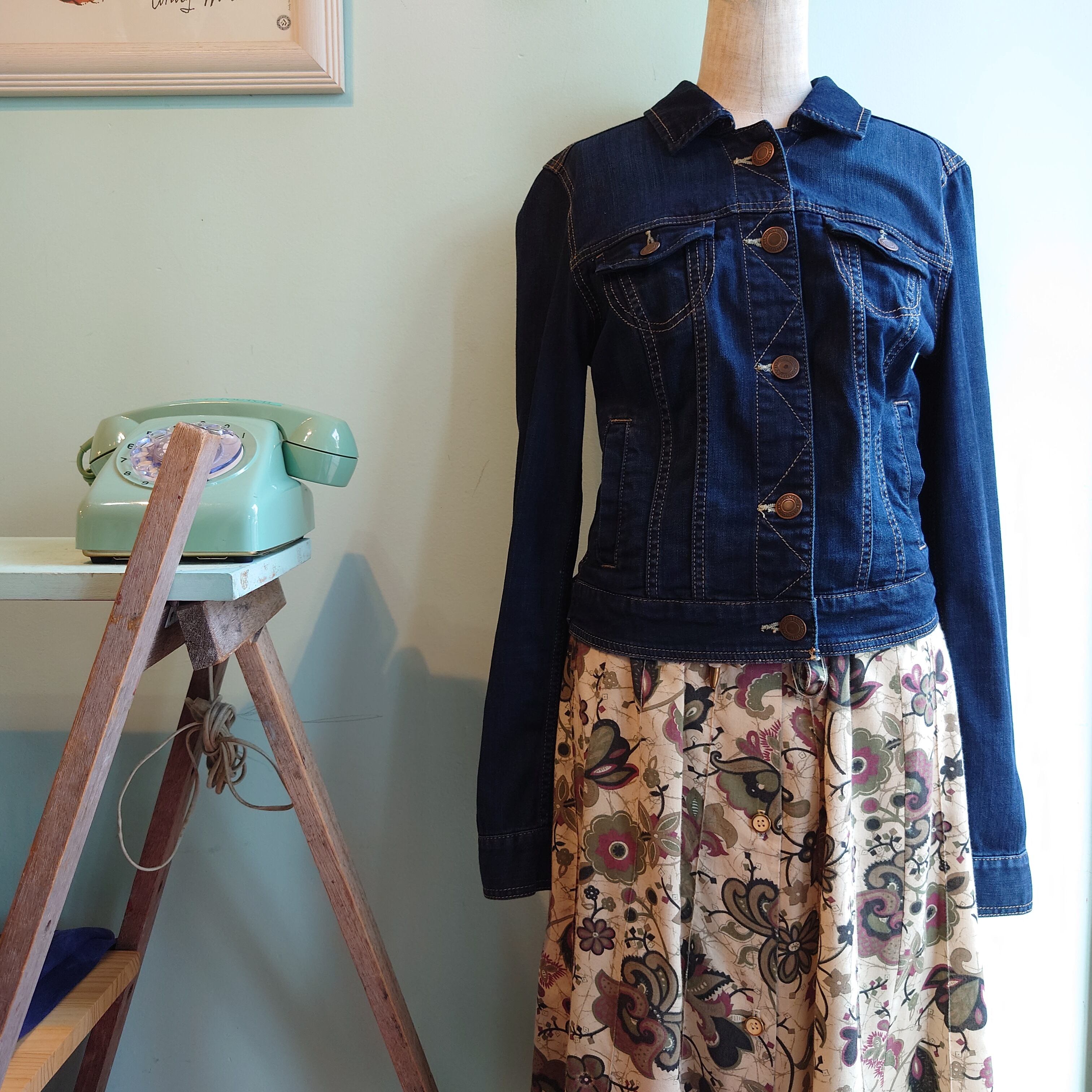 ミニマムなサイズ感やショートな丈感、レディースらしいカーブなど、Y2Kらしいアクセントに惹かれるデニムジャケット。ハイウエスト系に合わせればレトロ、ローライズに合わせればより00s テイストに、シャツ感覚の薄さで合わせられる1枚。ほんのりストレッチいりで着心地もよし。