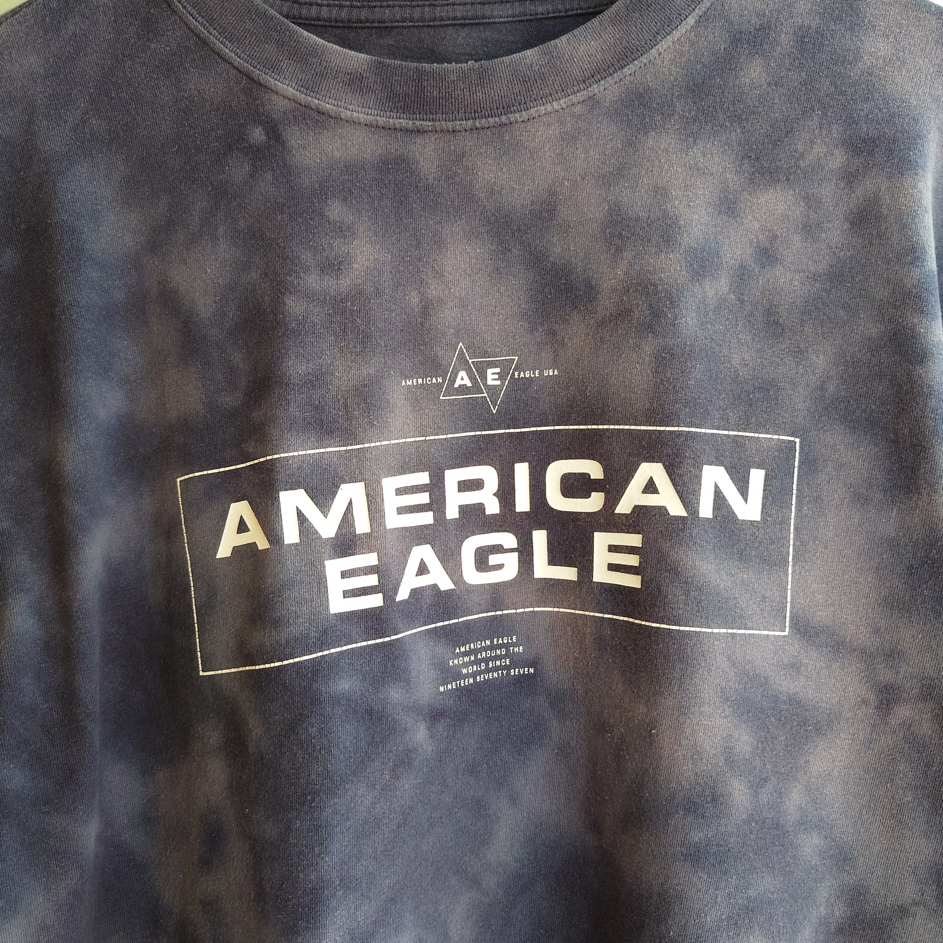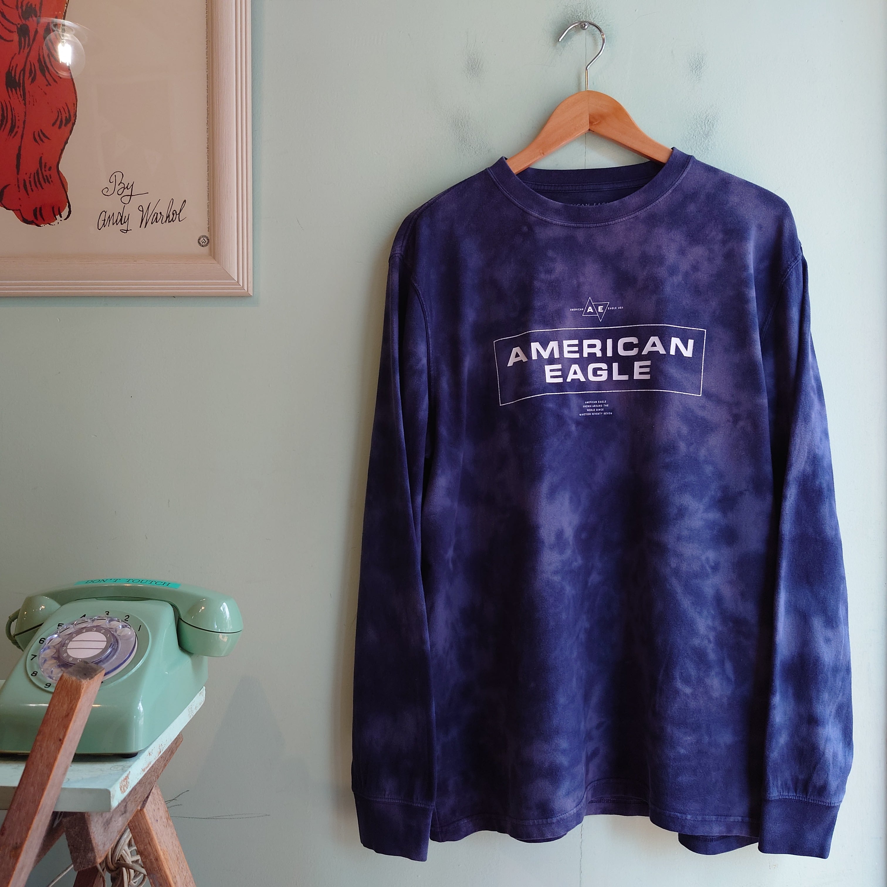 曇天のようなネイビー系タイダイがかっこいい、アメリカンイーグルのロゴTシャツ。ロゴはクラシックなブランド系のお手本的で、色合いとのギャップも面白い。ロンTではなかなかないデザインです。