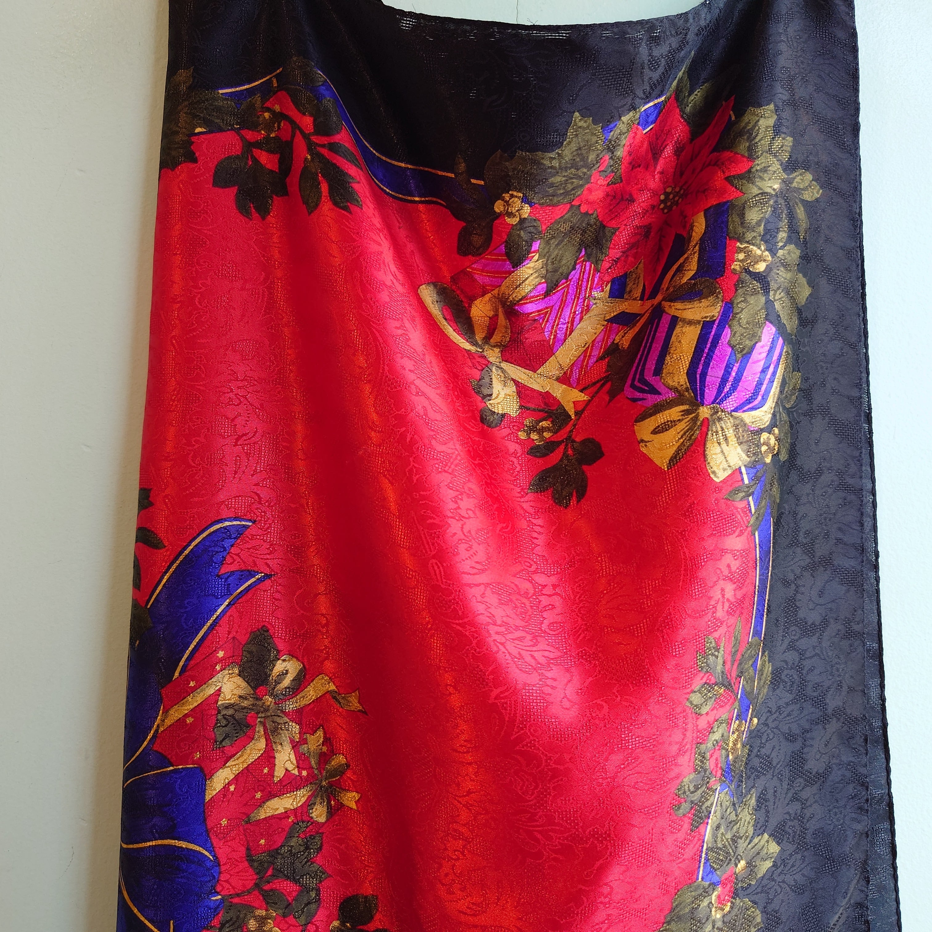 LIZclaiborne 花柄 ペイズリー柄 総柄スカーフ サテンスカーフ 赤 黒 00s