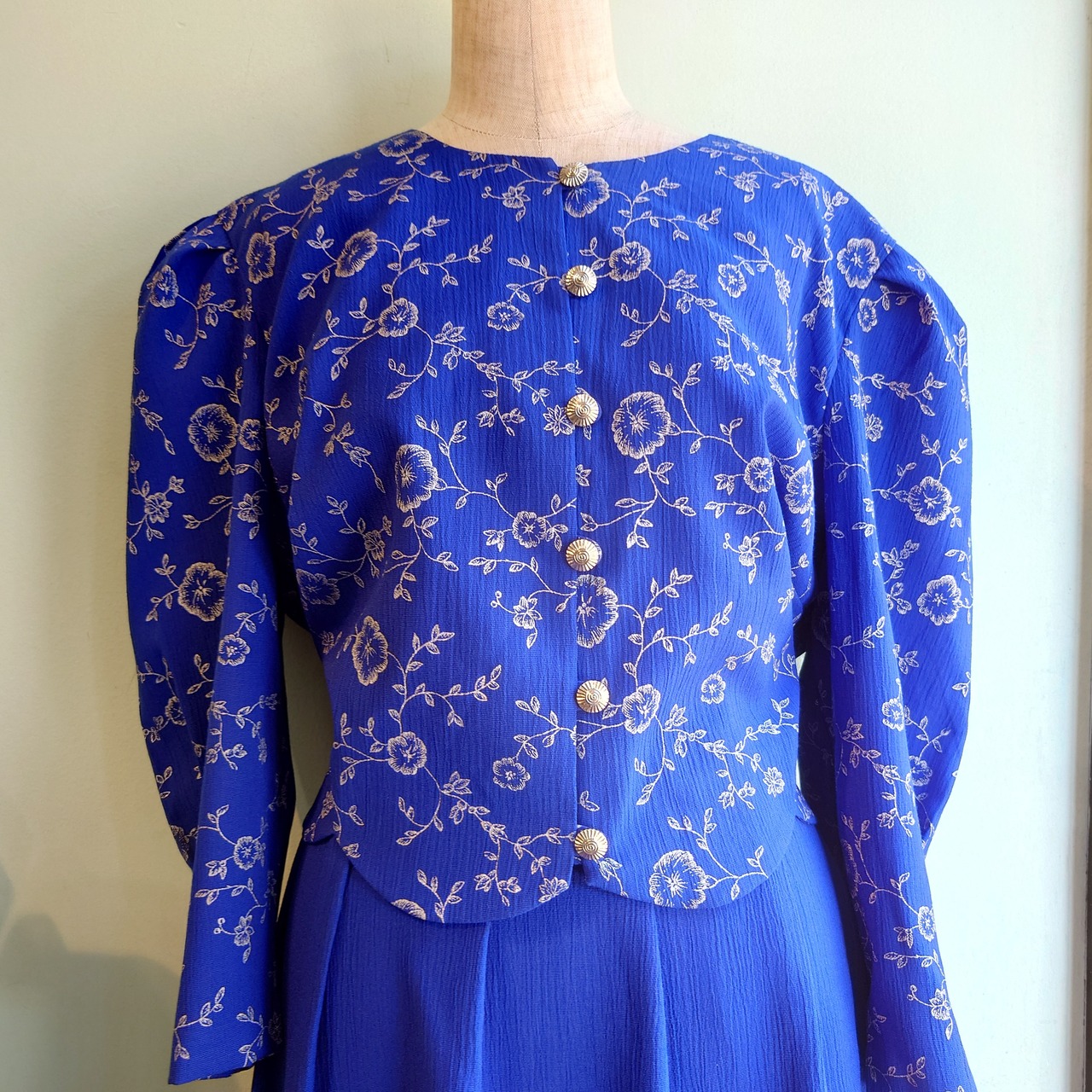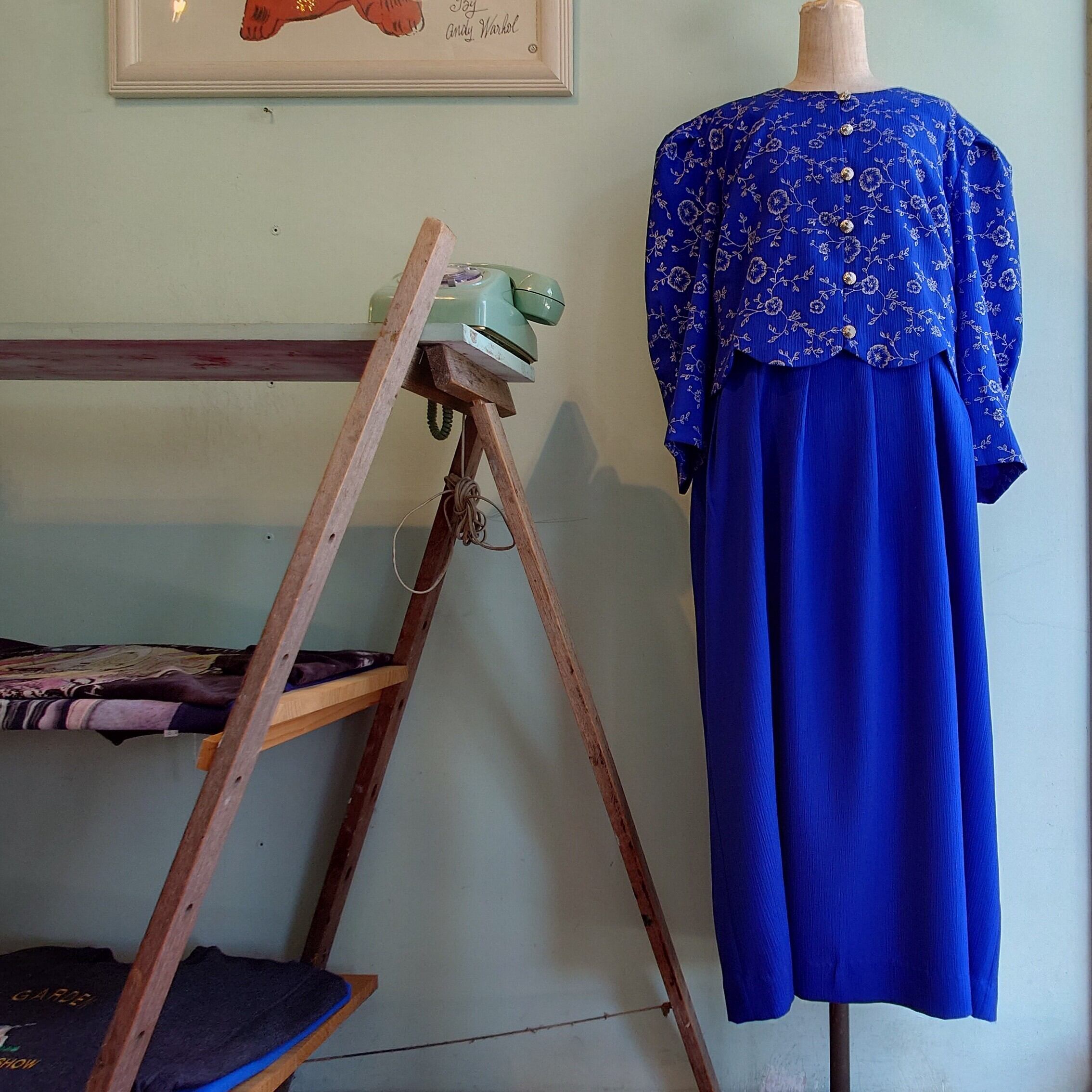 Miss Dorby 90-00s vintage ヴィンテージドレス アンサンブルワンピース 総柄ワンピース 青