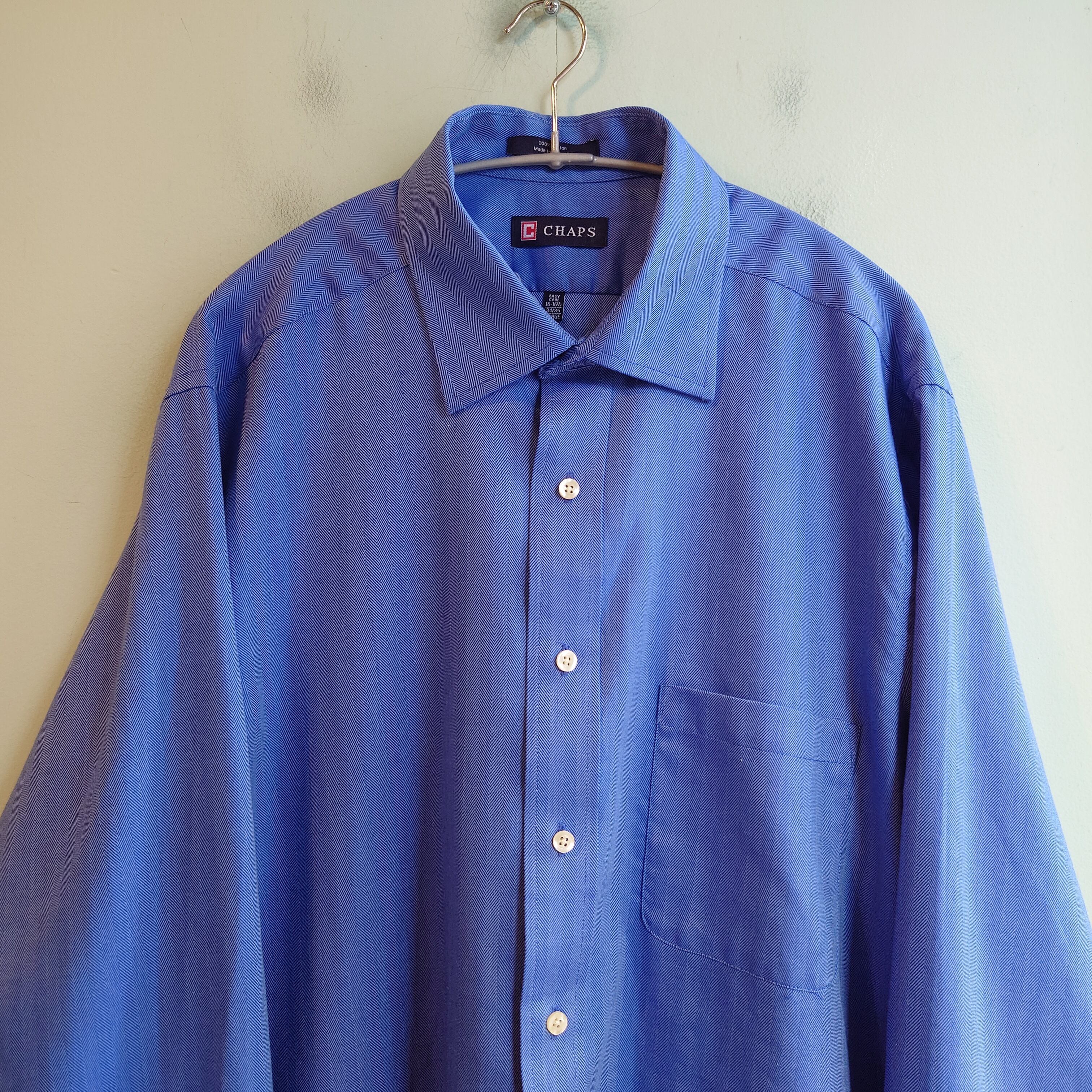 CHAPS 00s ドレスシャツ ツイルシャツ カラーシャツ 青 コットンシャツ L程度