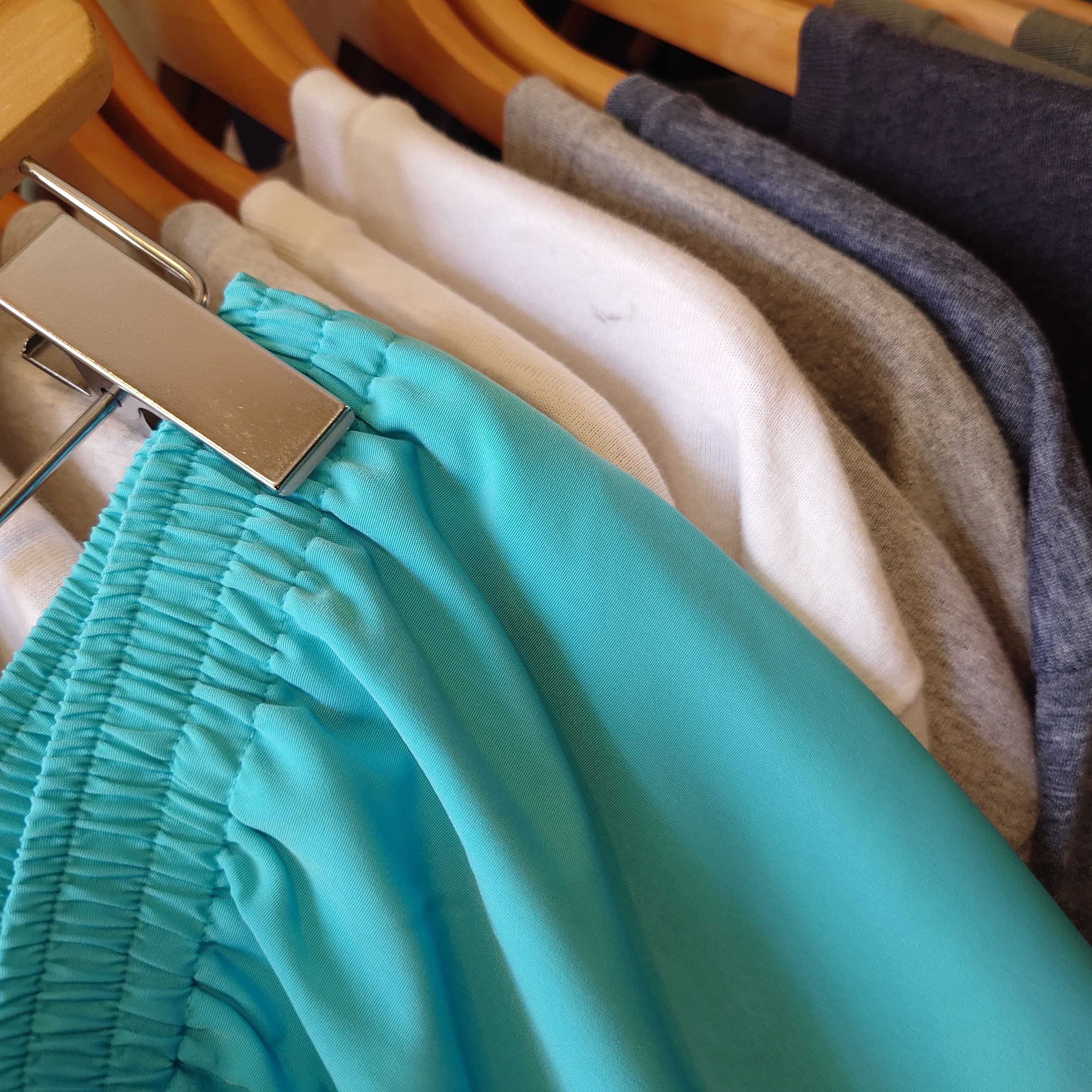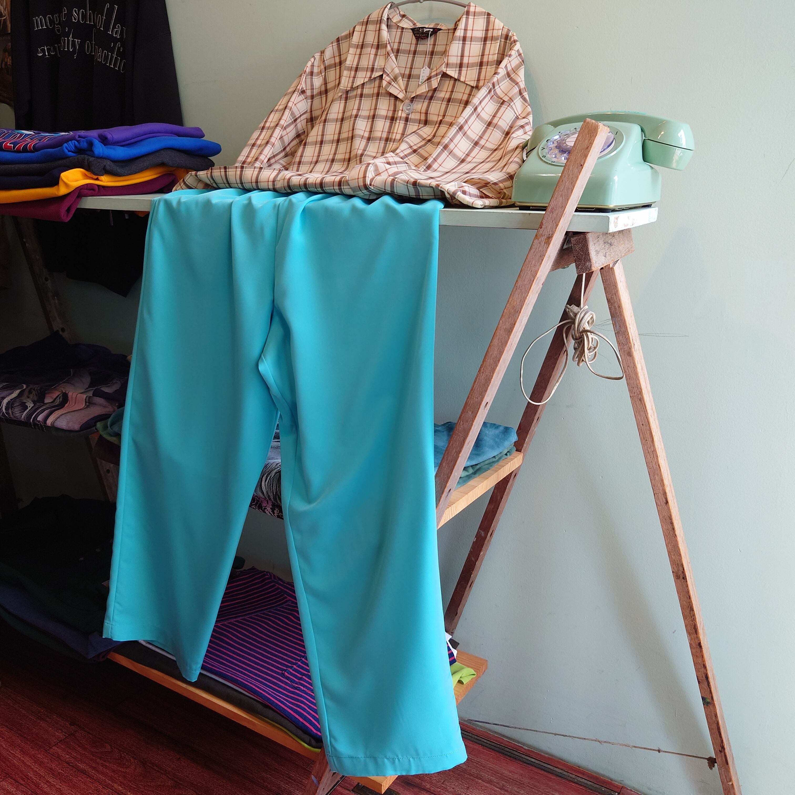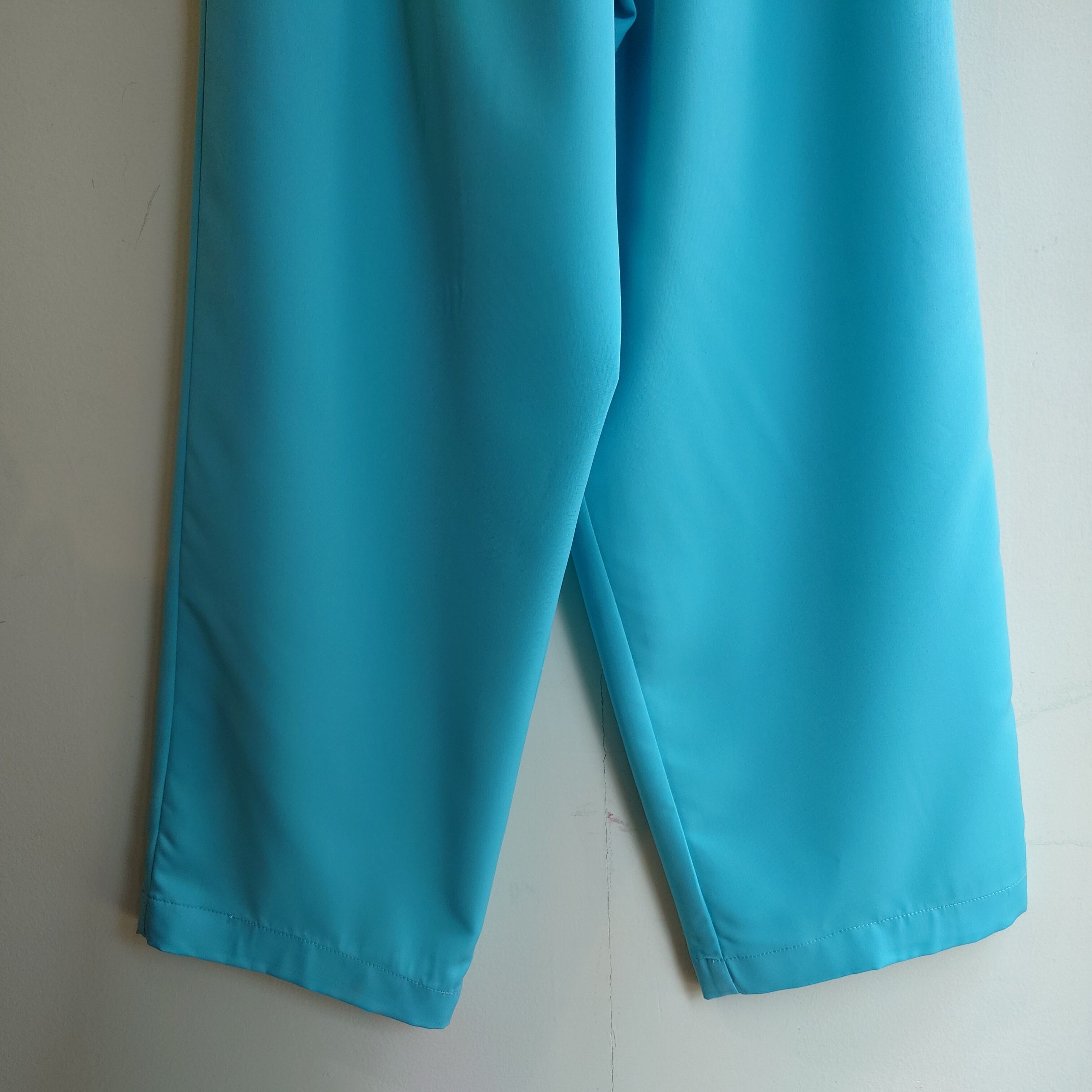 スカイブルーとコバルトブルーを合わせたような、独得な光沢ブルーに惹かれるイージー。通常のイージースラックスよりも、よりワイドよりのテーパードと、テロッとした柄シャツのような薄い生地感がレアなドレッシー系の一本。