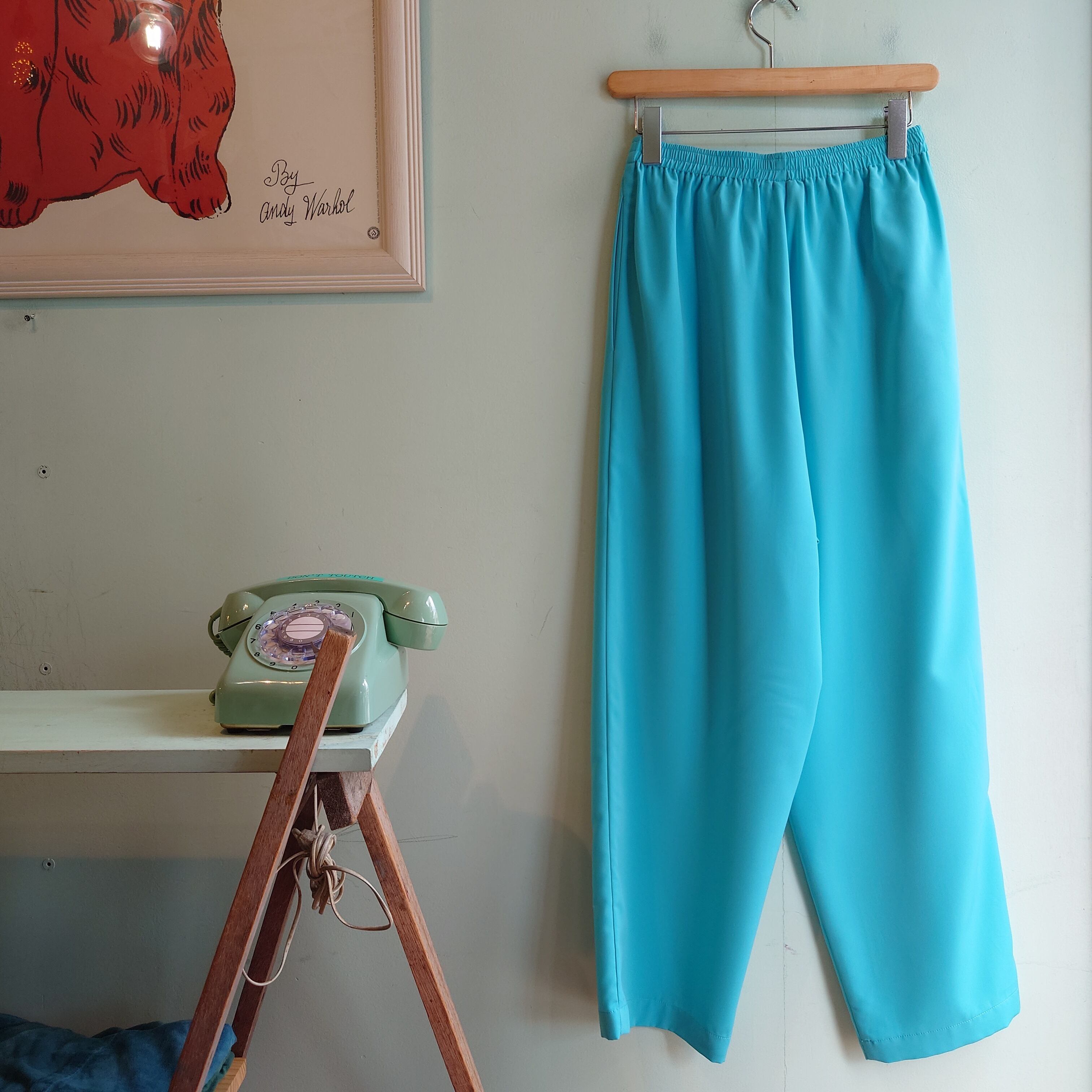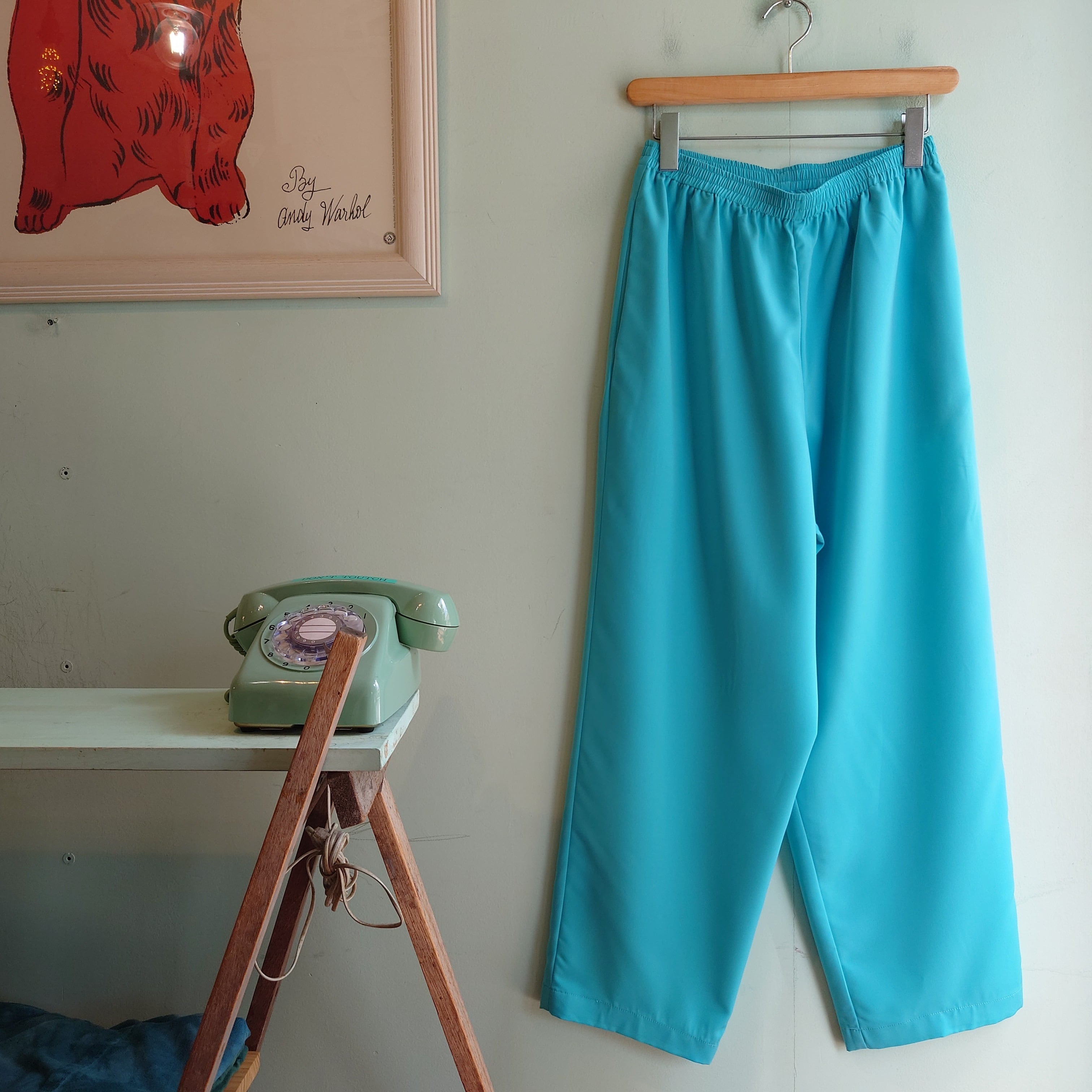◎MAGGIE STREET ~90s vintage イージースラックス エラスティックパンツ ワイドパンツ 青系