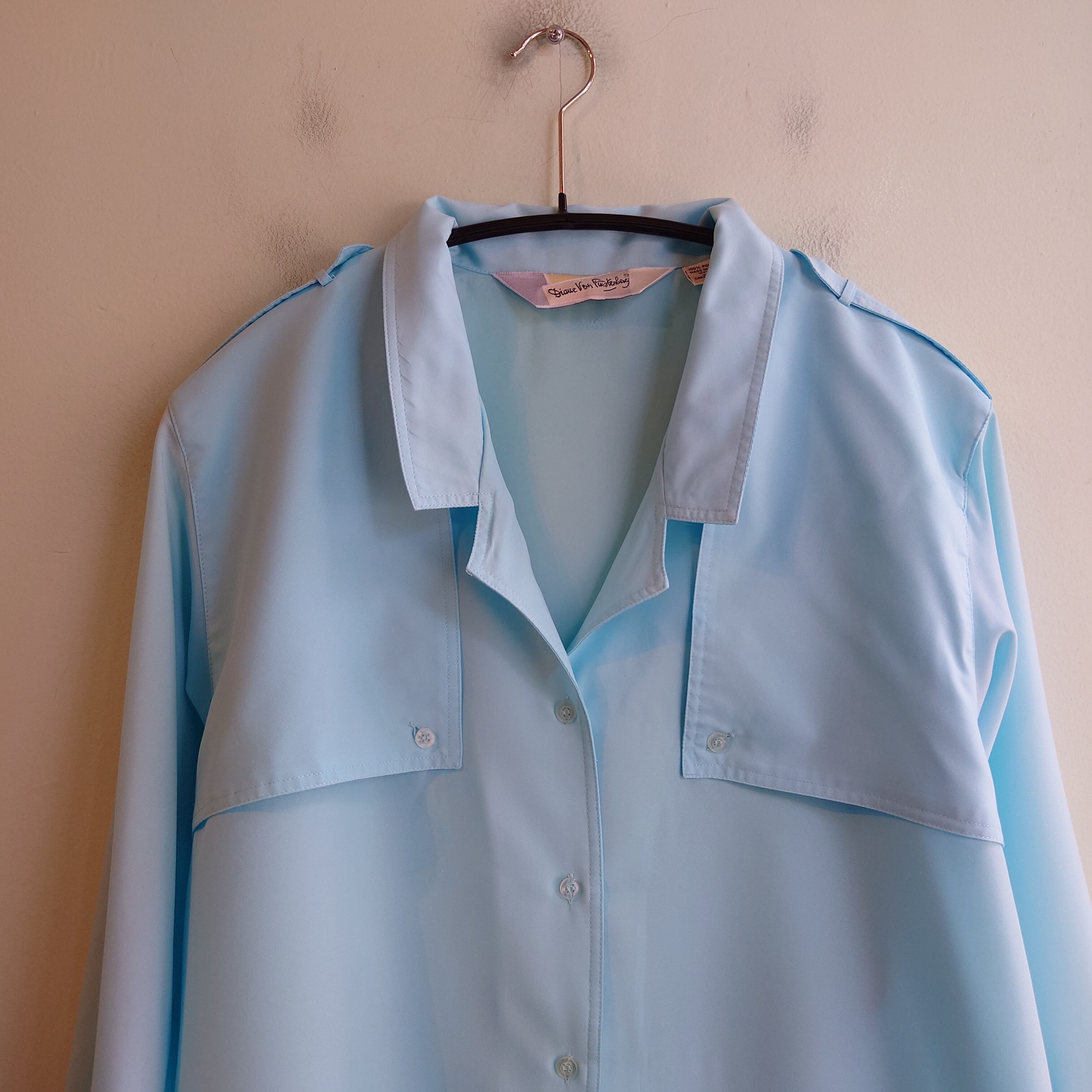 ◎Diane von Fürstenberg 90-00s デザインブラウス サファリブラウス カラーブラウス 青系