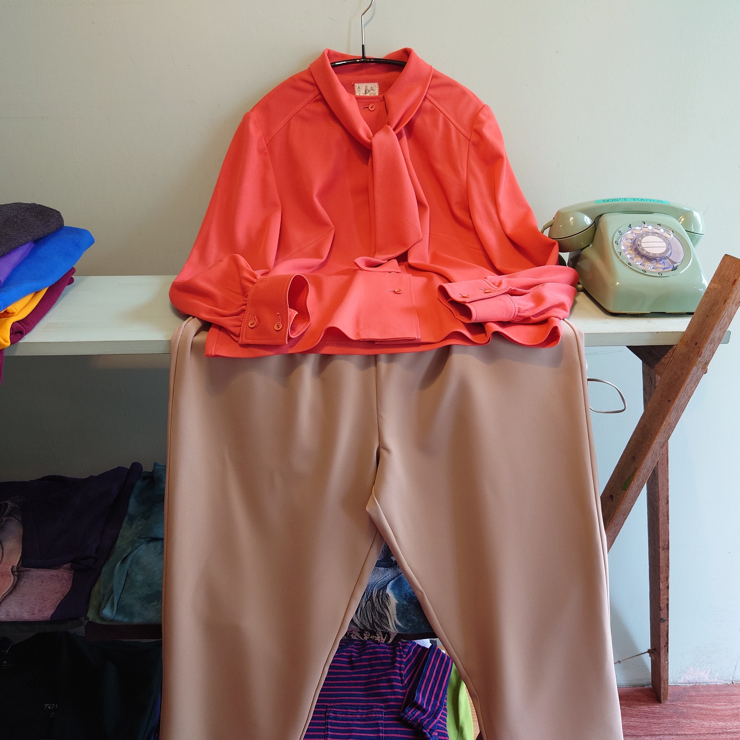 ◎LIROSE 70-80s vintage ヴィンテージブラウス リボン付きブラウス スタプレブラウス オレンジ ユーロ系