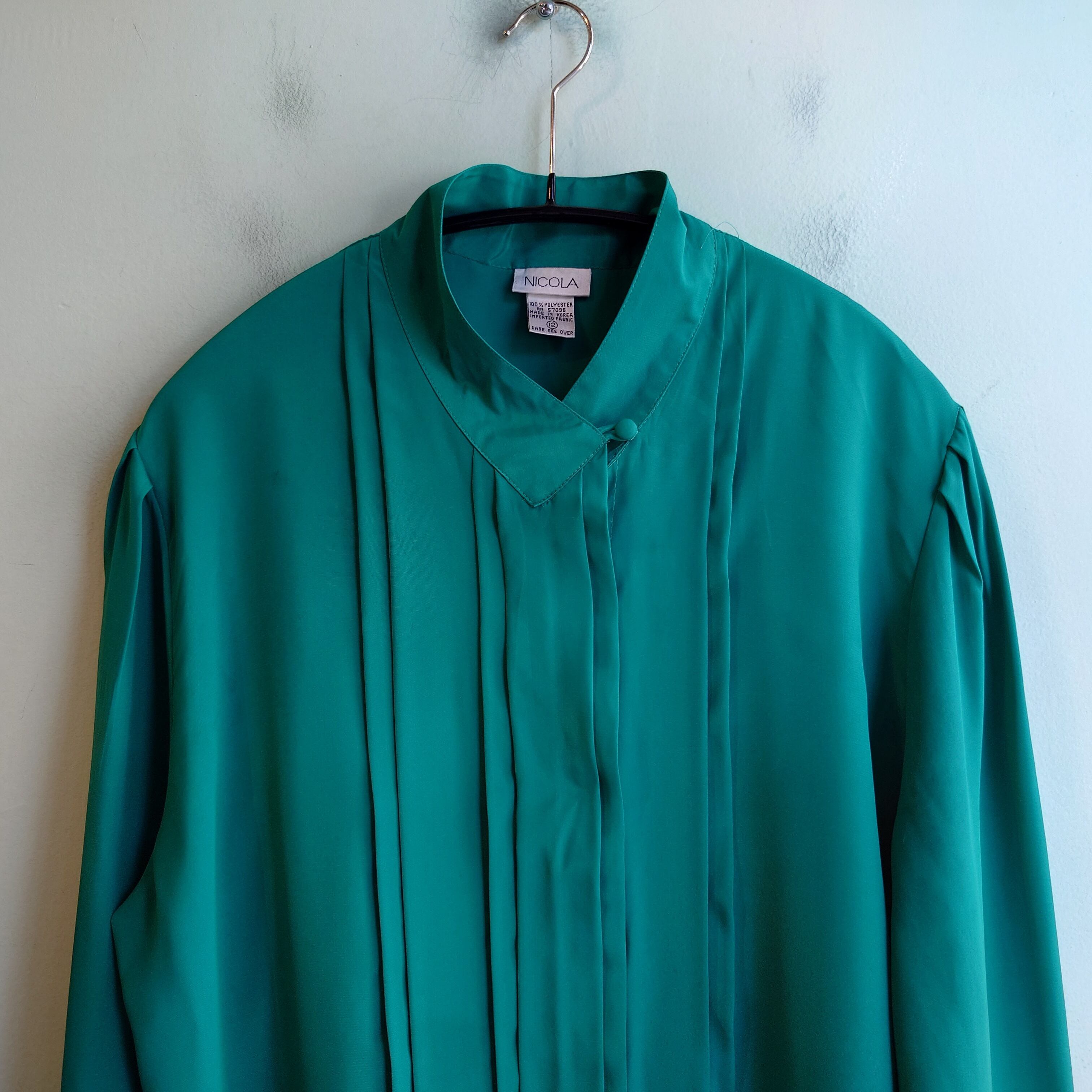 NICOLA 00s カラーブラウス 前ひだブラウス デザインブラウス 緑系