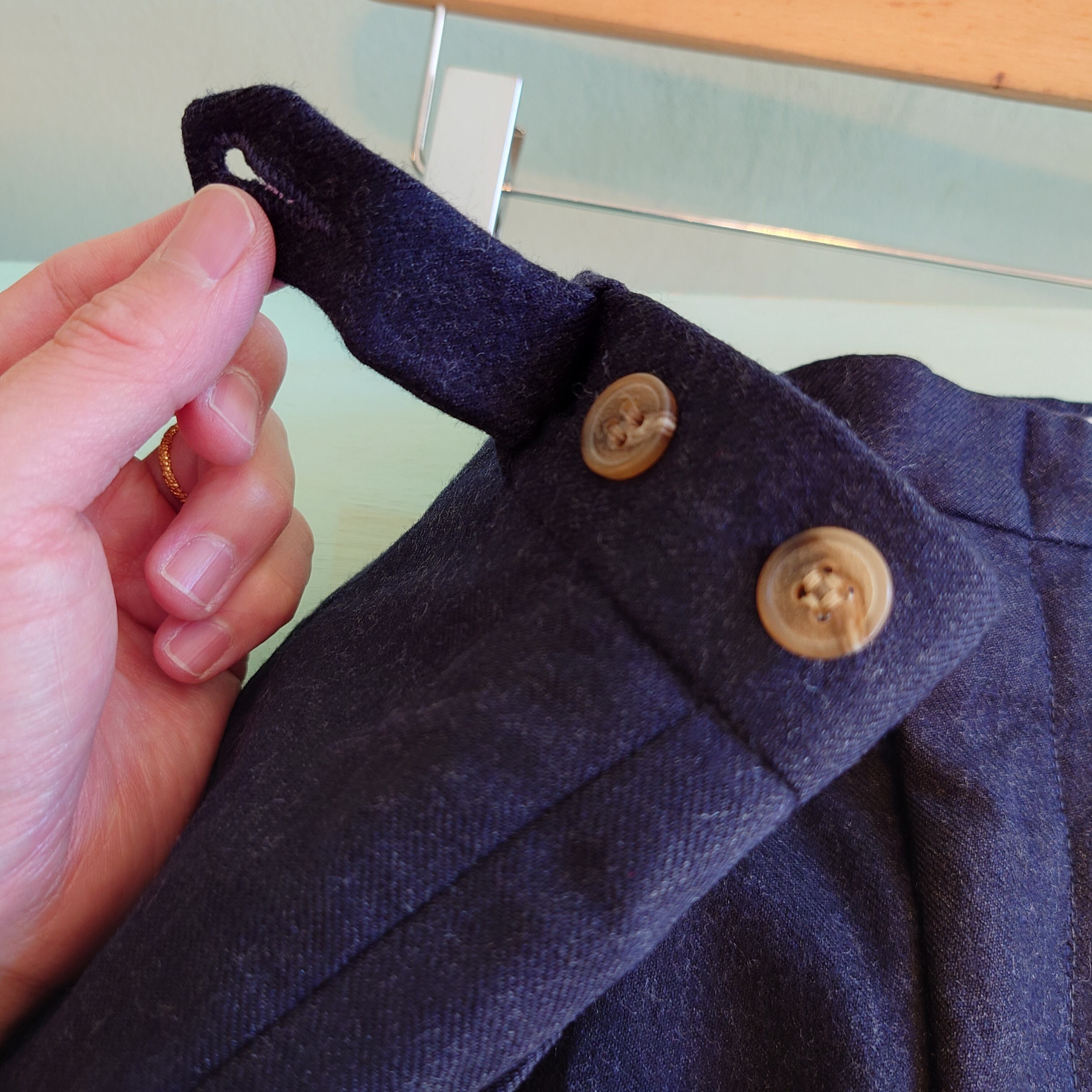 ベルトループなし、サイドの紐マイナス方面にはボタンの位置をつけ直すことで調整可能。