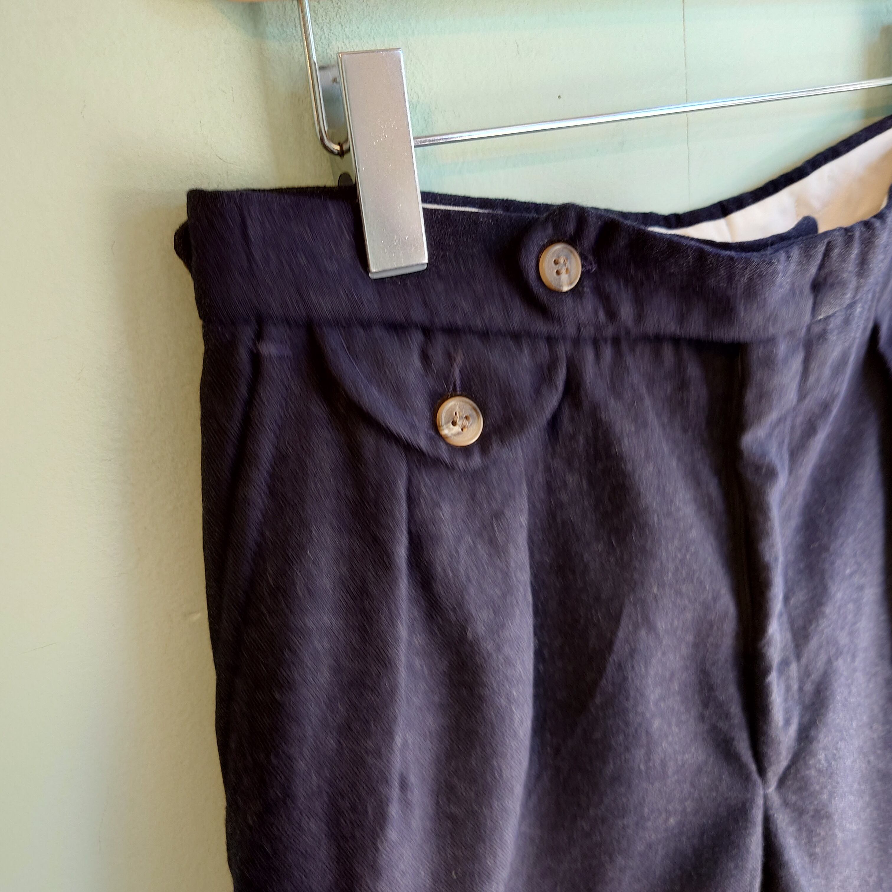 厚手ウール素材に裏地が着いた、トラッドでヨーロピアンな雰囲気の厚手スラックス。ストンとしたシルエットで、合わせればわずかにフレアのような裾周りも◎。濃紺の上品さ、クールさを併せ持った大人っぽいボトムです。
