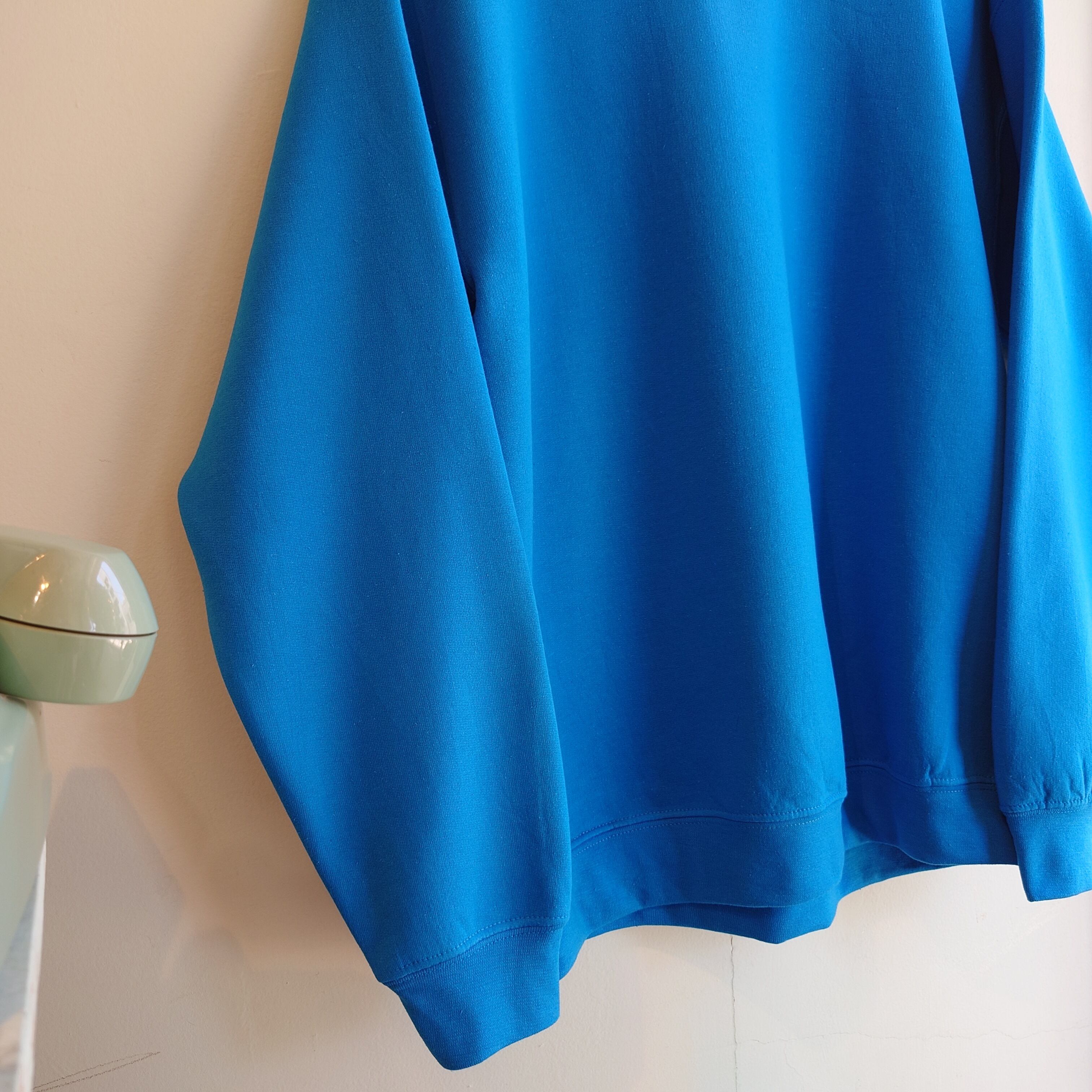 古着らしいコロンとした丸みのあるシルエットと、柔らかくもしっかりした生地感でプリント無しでも存在感ありなGILDAN。スカイブルーやターコイズ系の青で、明るめながらボトムのチョイスも自由。
