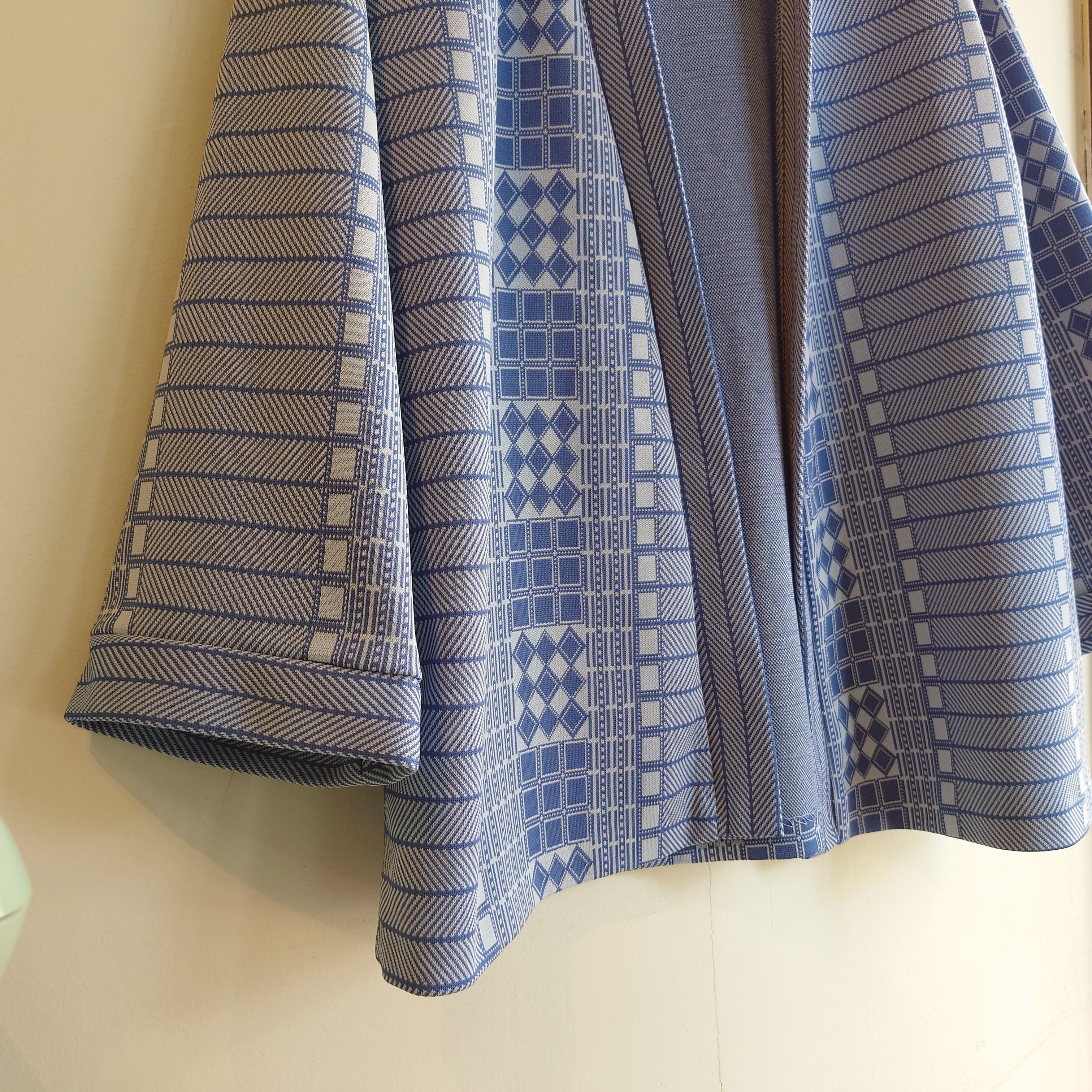 ◎70-80svintage ボタンレスカーディガン シャツカーディガン 総柄 水色 スタプレ