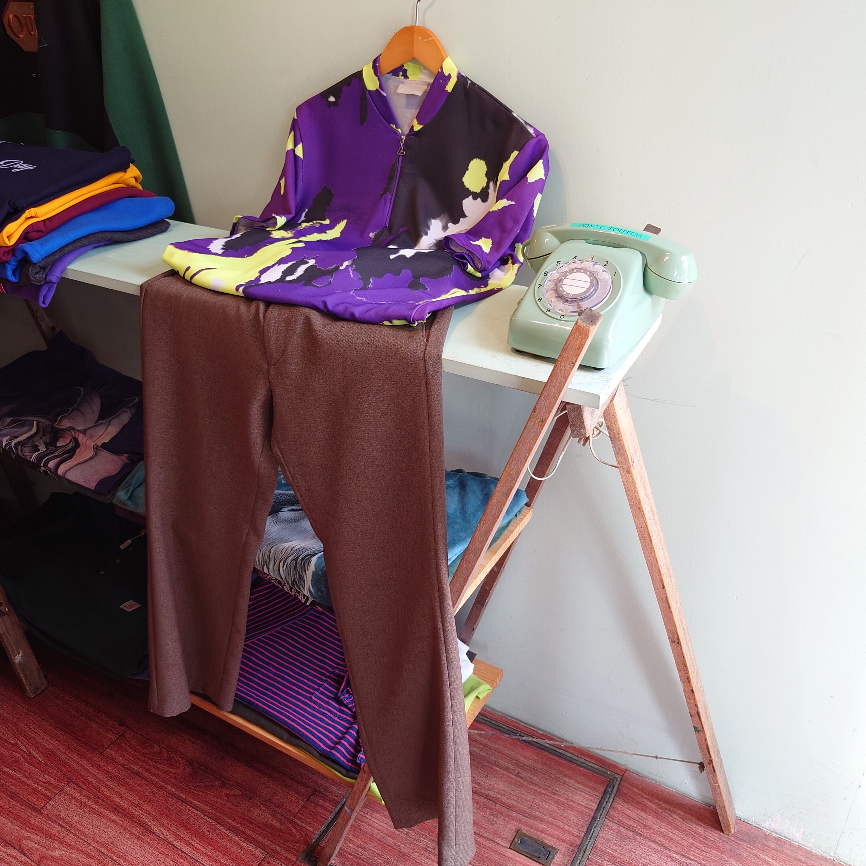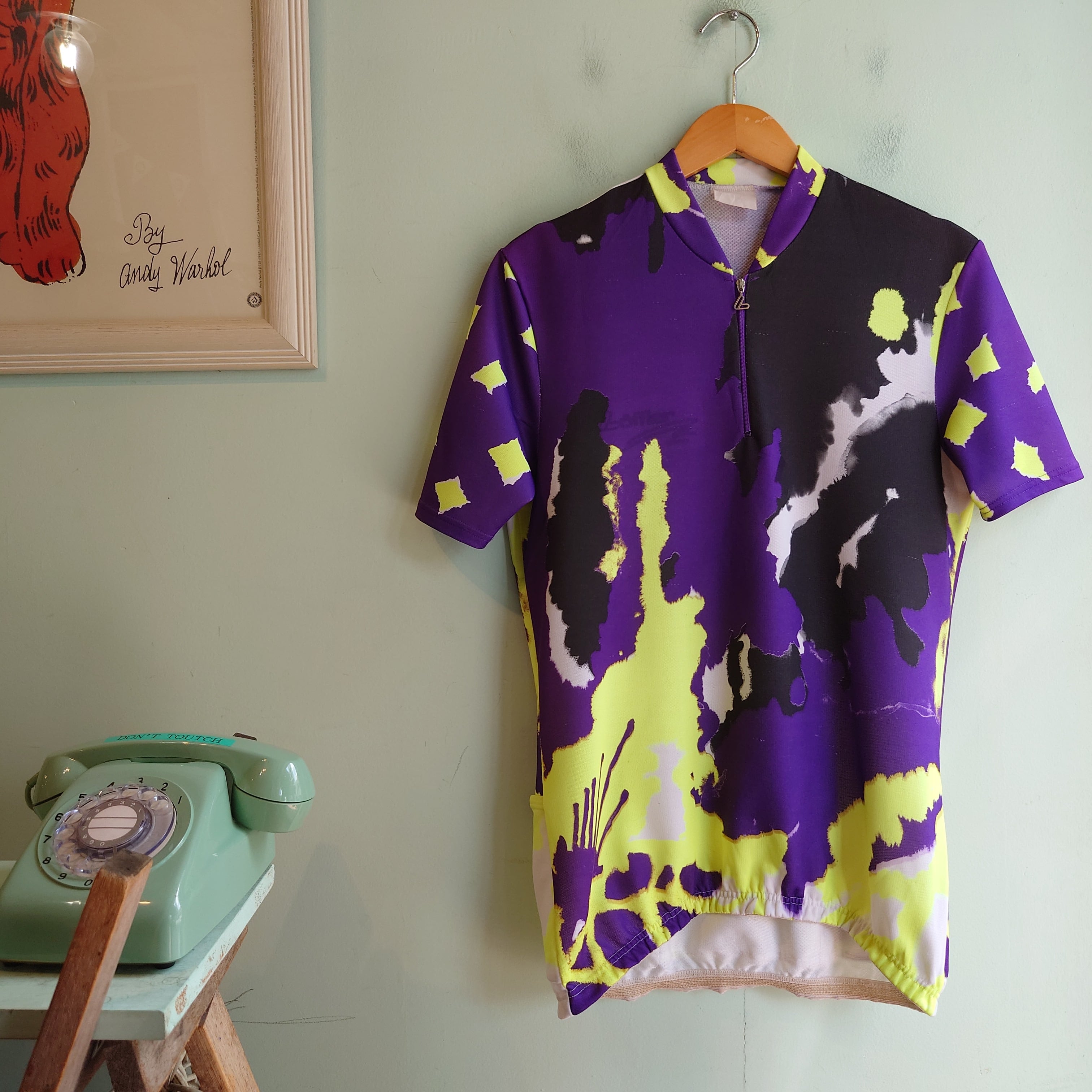 ◎Löffler ~90s vintage サイクルジャージ スポーツジップトップス 紫 黄色