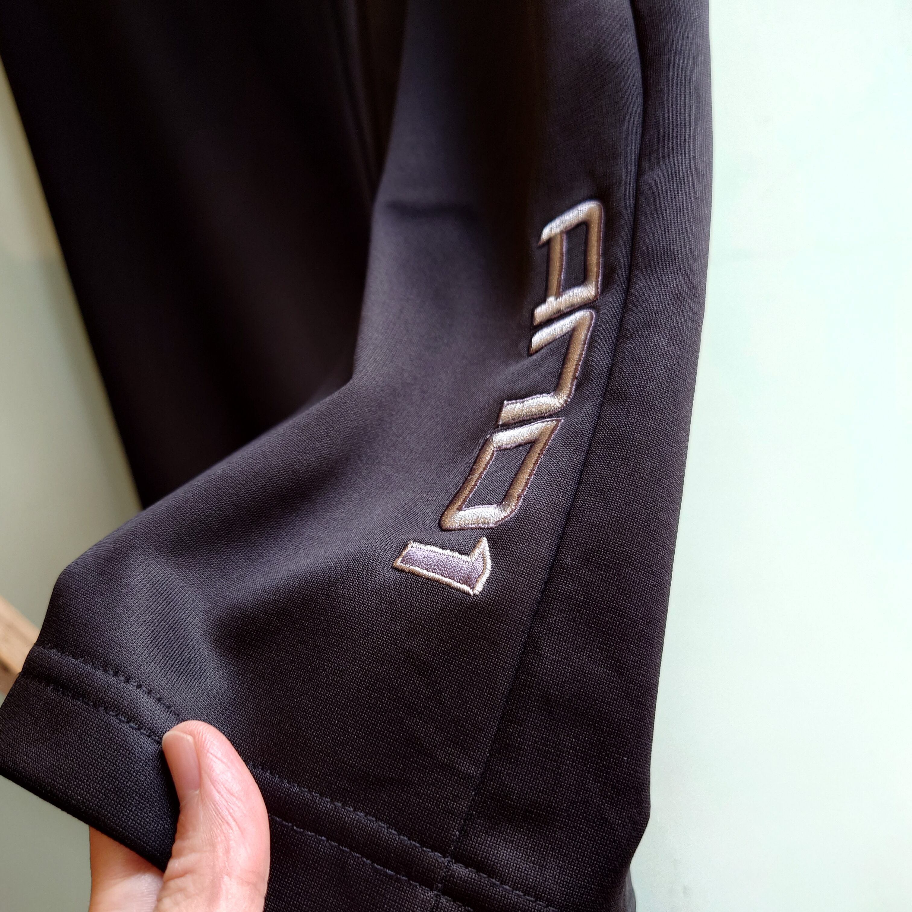 AND1のバスパン系トラックパンツ。バスケ的なシルエットで、ストンとワイドなシルエットが◎。ナイトウエアのような光沢もあり、大人っぽいテイストにも似合いそう。裾とバックポケットの刺繍もかわいい。