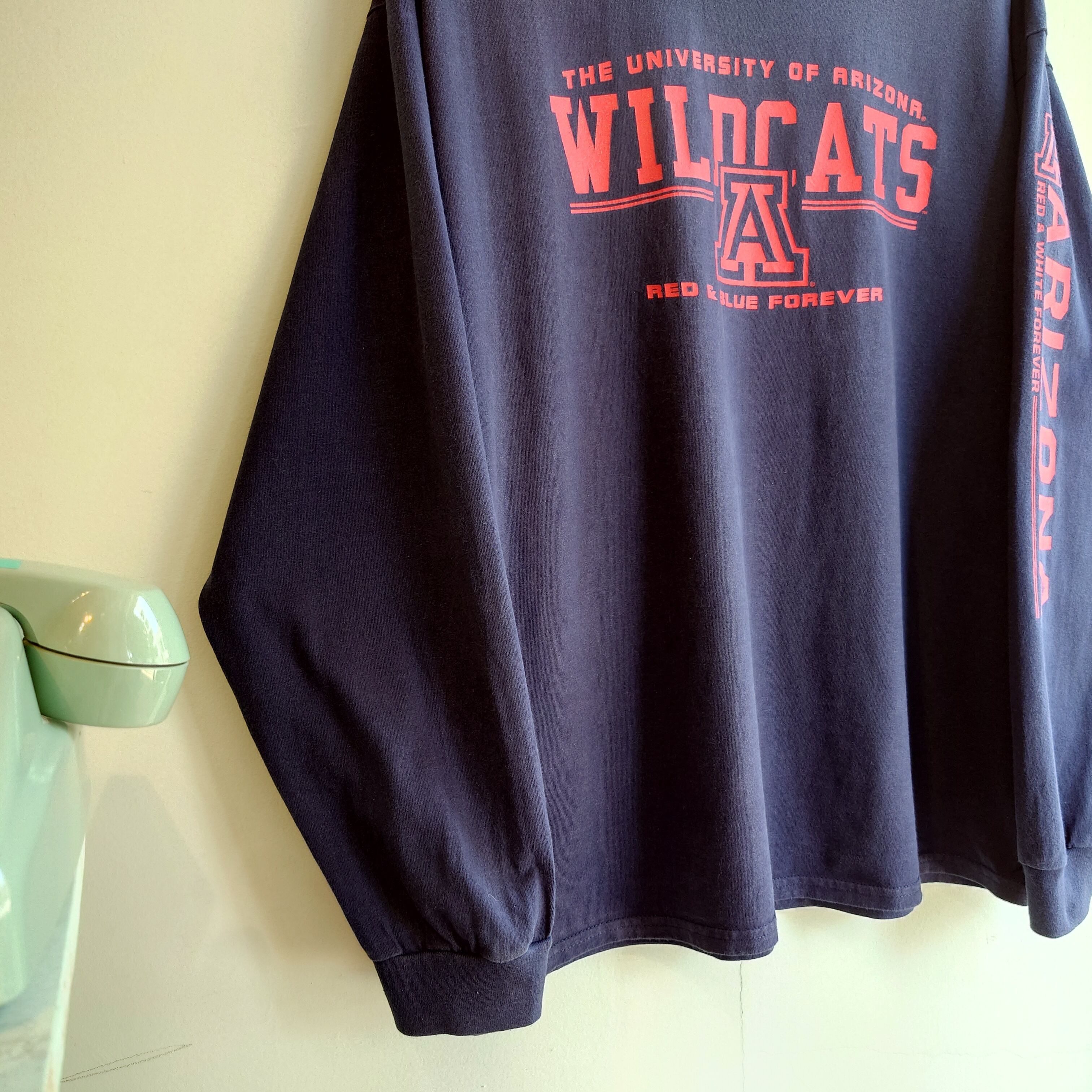 アリゾナ大学バスケットボールチーム、ワイルドキャッツのカレッジロンT。ネイビーにカレッジプリントの定番系ながら、単色刷りならではの潔さがかっこいい。ショルダープリントもインパクトあり。