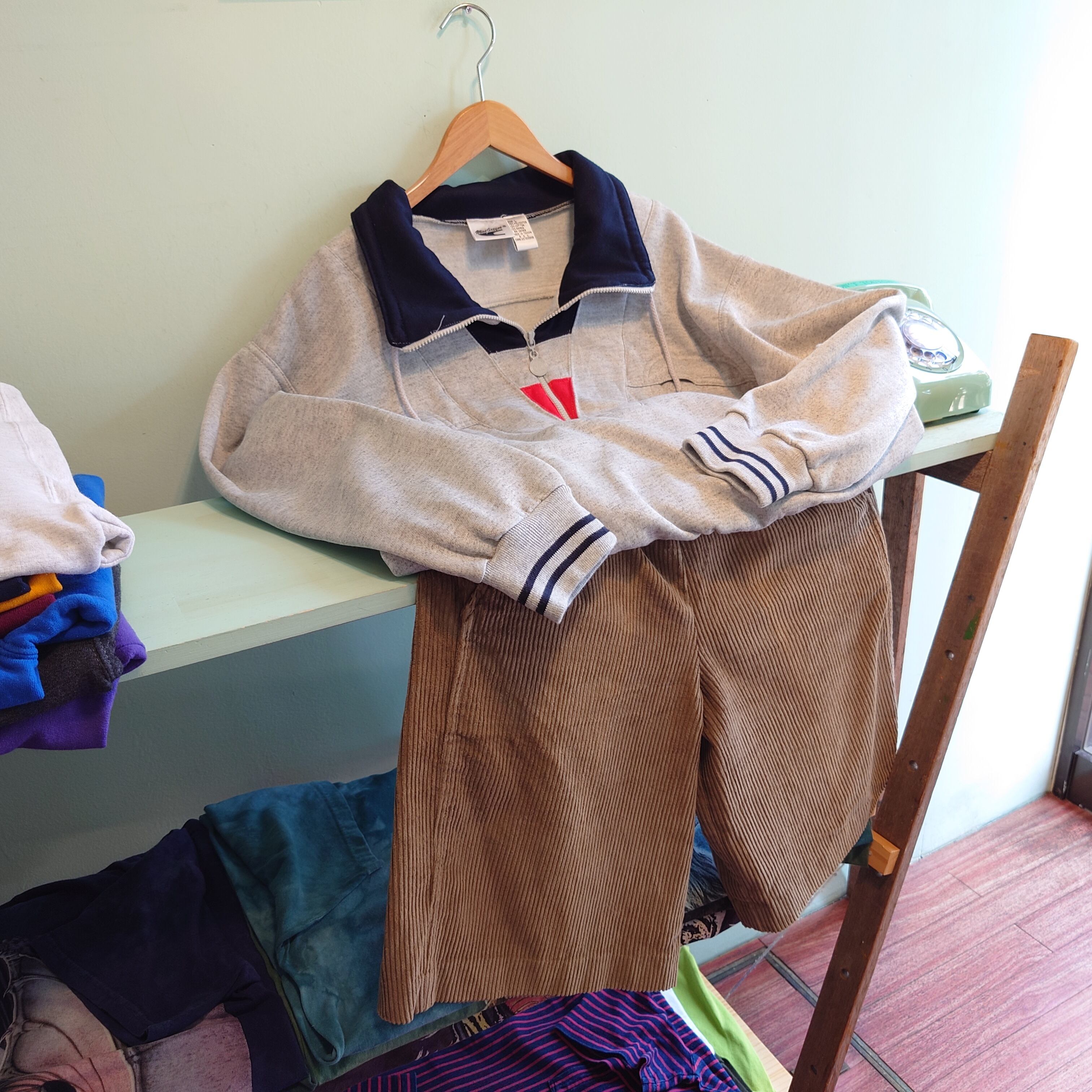マグレガーのオールドスウェット。ヨットを連想させるジップ周りとセーラー風の襟、ポケットまわりのギミックに惹かれるユニセックス系のジップスウェット。コロンと丸めなシルエットながら、襟、裾のリンガーでピリッと引き締まったデザインも◎。ガーリーに着こなすも良し、メンズがあえてチョイスしてもかわいい。