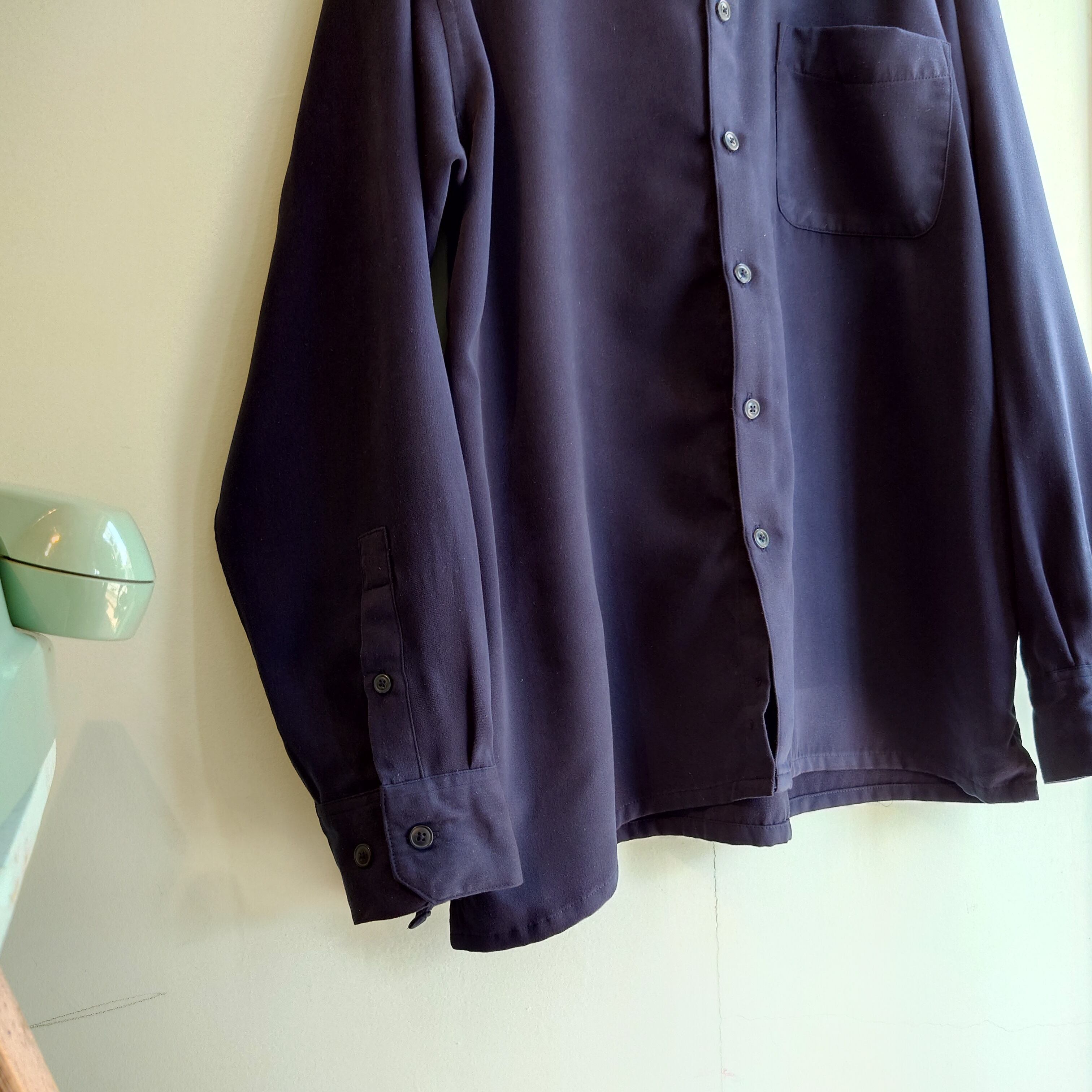 ◎BRUNO 90-00s フェイクスウェードシャツ ドレスシャツ 異素材シャツ ネイビー L