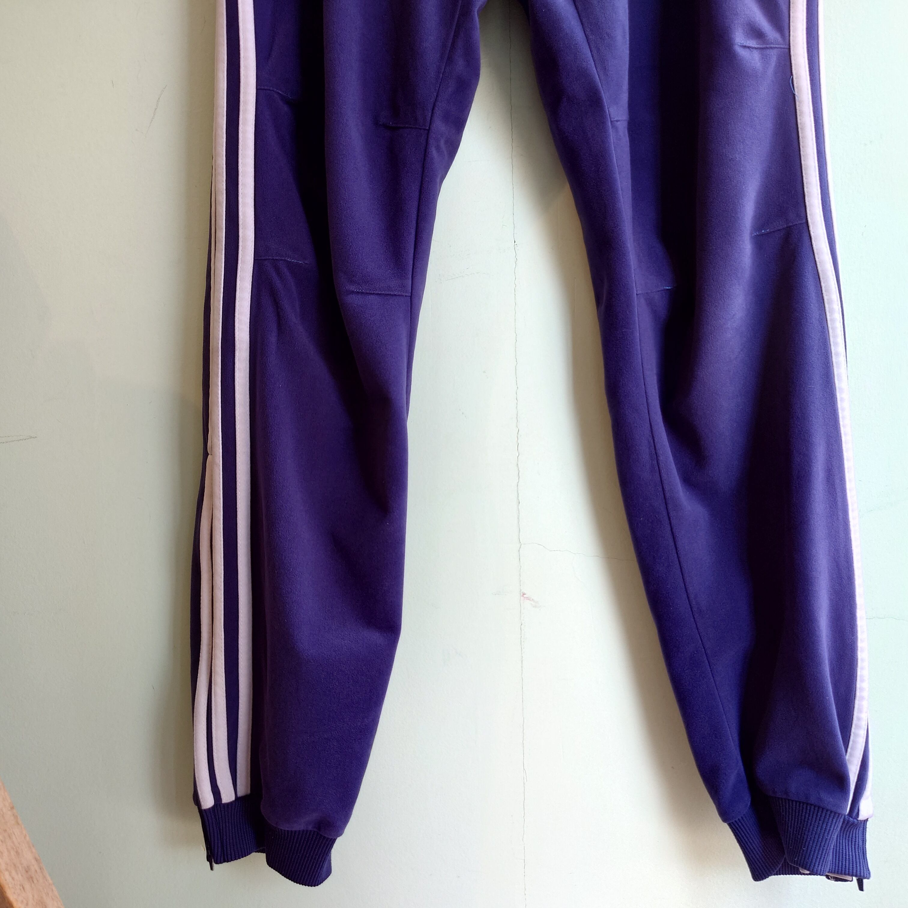 ◎adidas 90-00s D5 f174 ベロアパンツ サイドラインパンツ 異素材イージーパンツ ネイビー