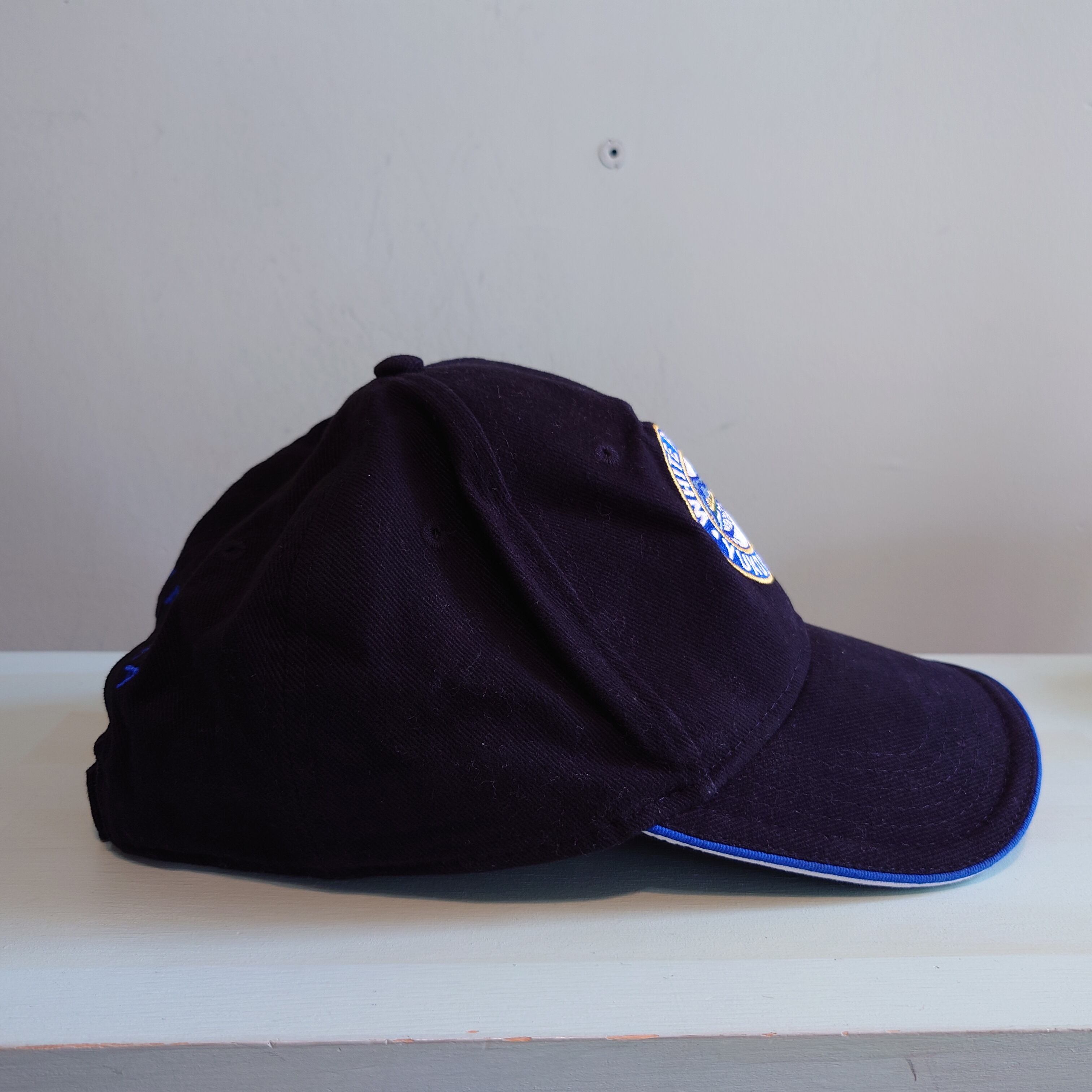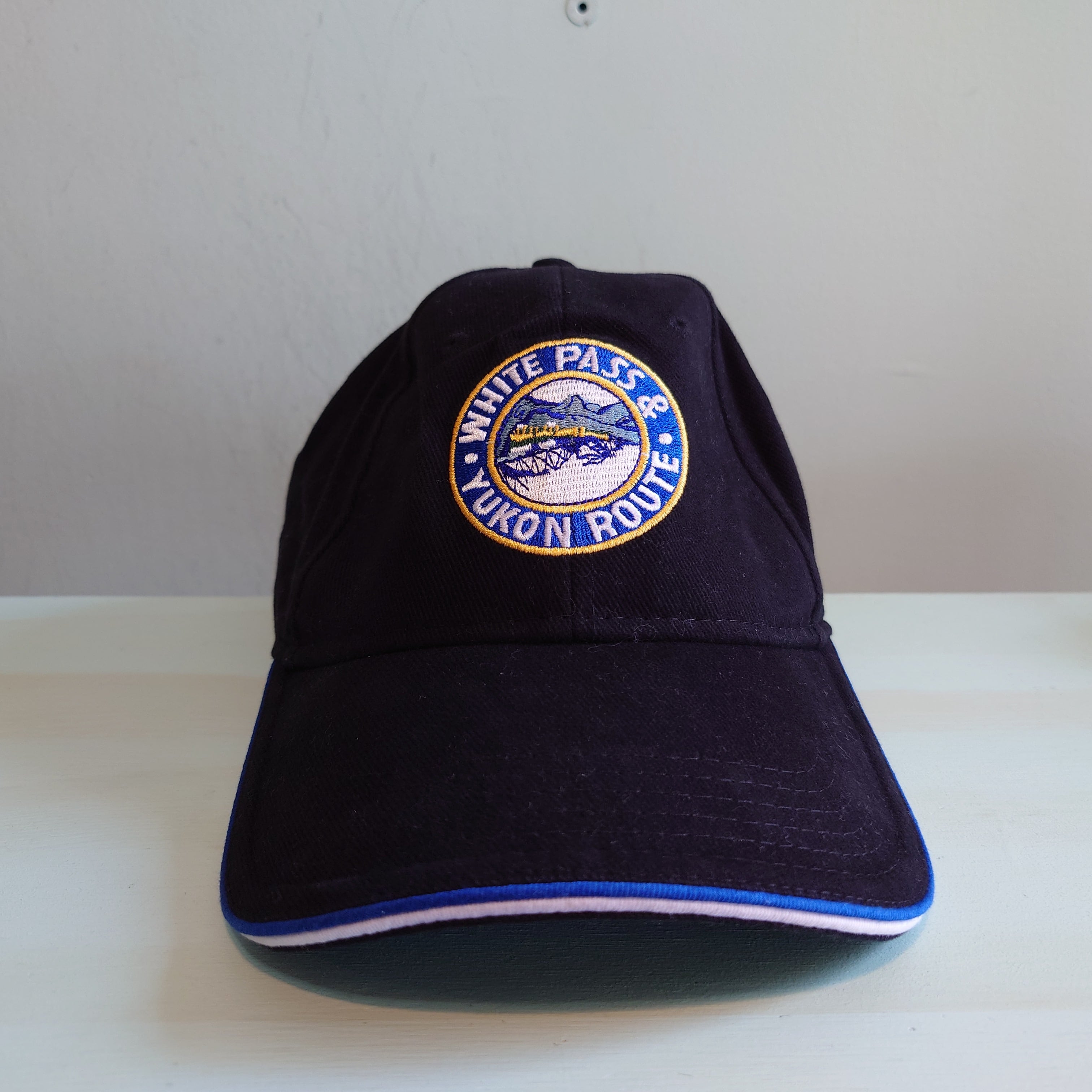 米国とカナダを結ぶ観光鉄道、ホワイト・パス・アンド・ユーコン・ルートのスーベニアキャップ。かつてゴールドラッシュを支えた歴史あるルート。叙情的なワッペンやツバのラインなど、ブルーが印象的に使われたグッドデザイン。