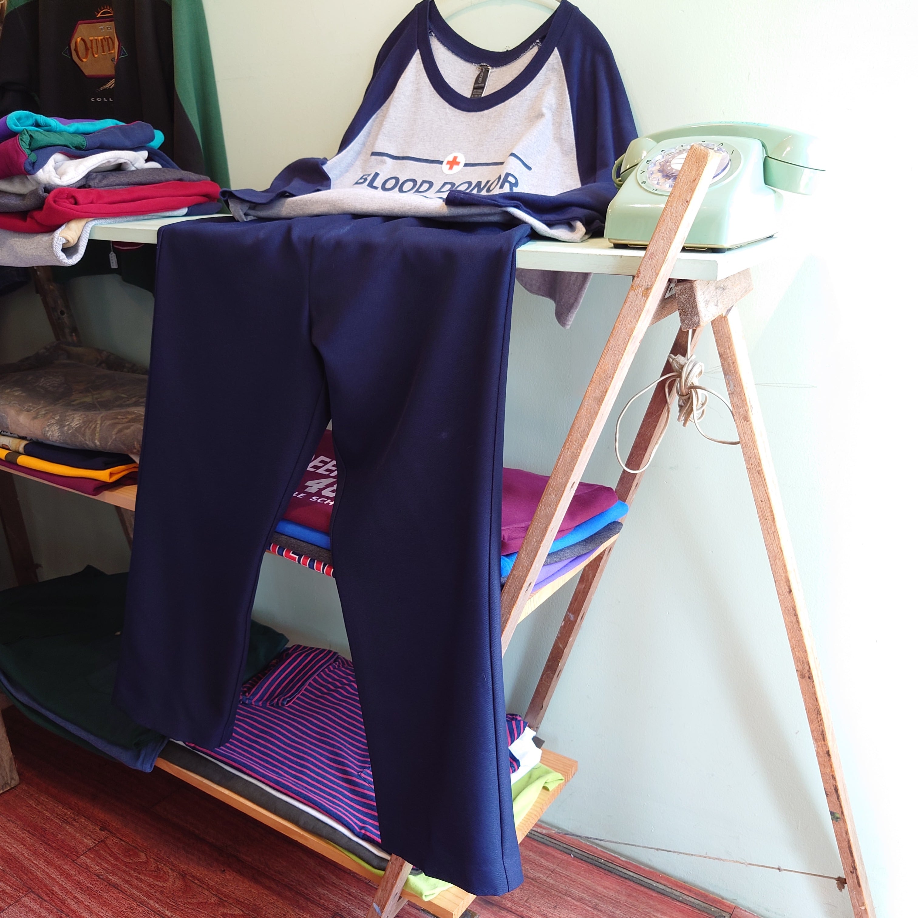 ALFRED DUNNER 90-00s イージースラックス エラスティックパンツ カラーパンツ ネイビー 14