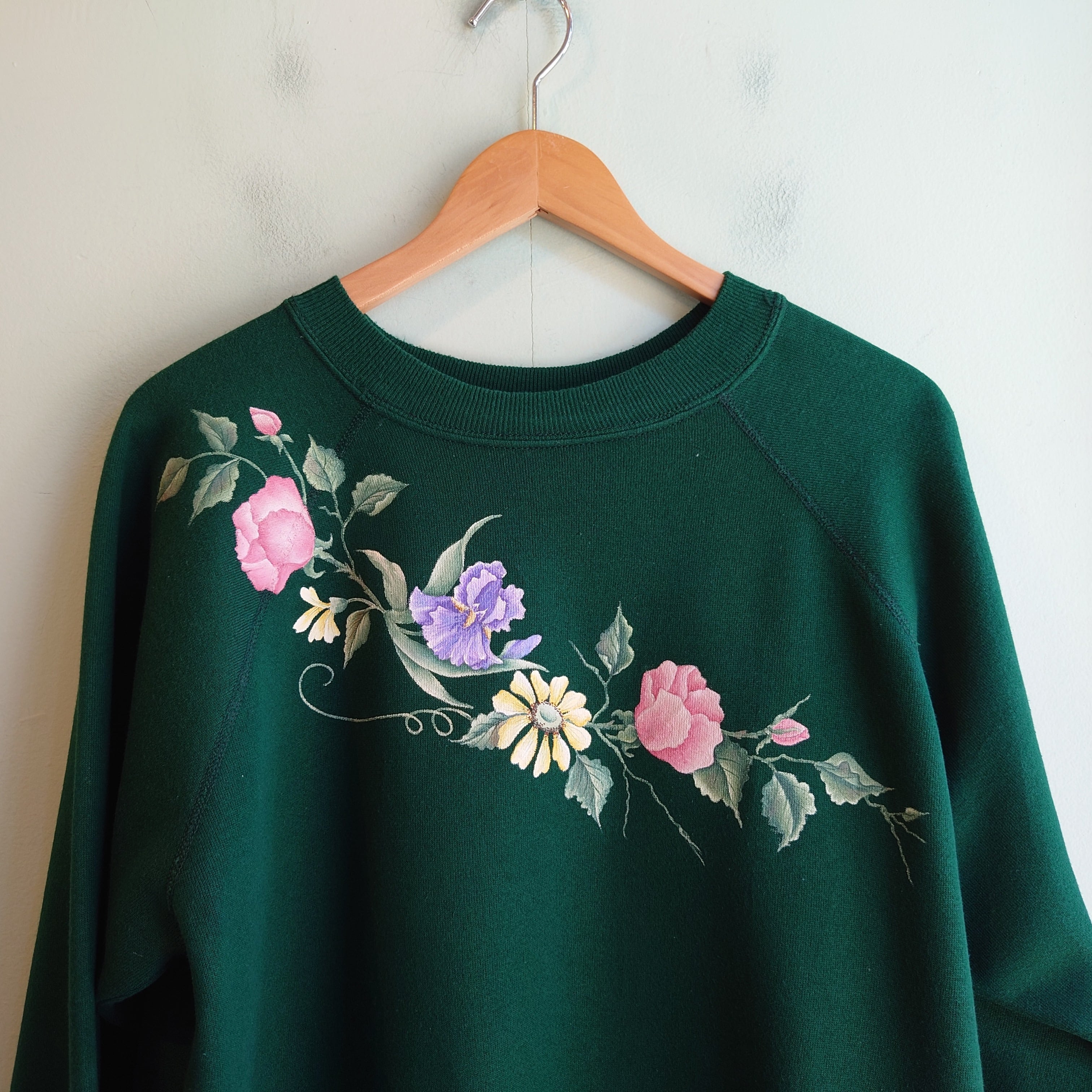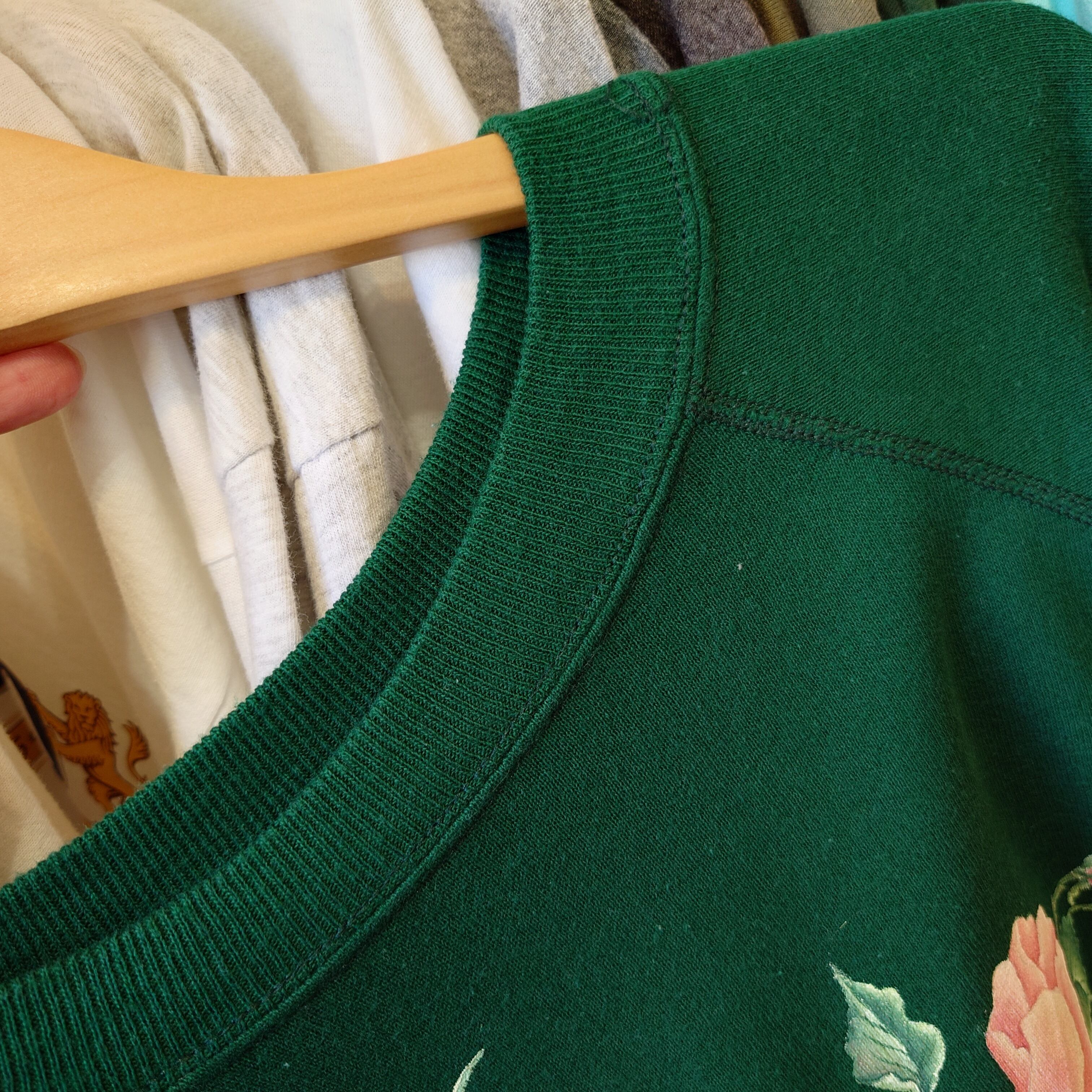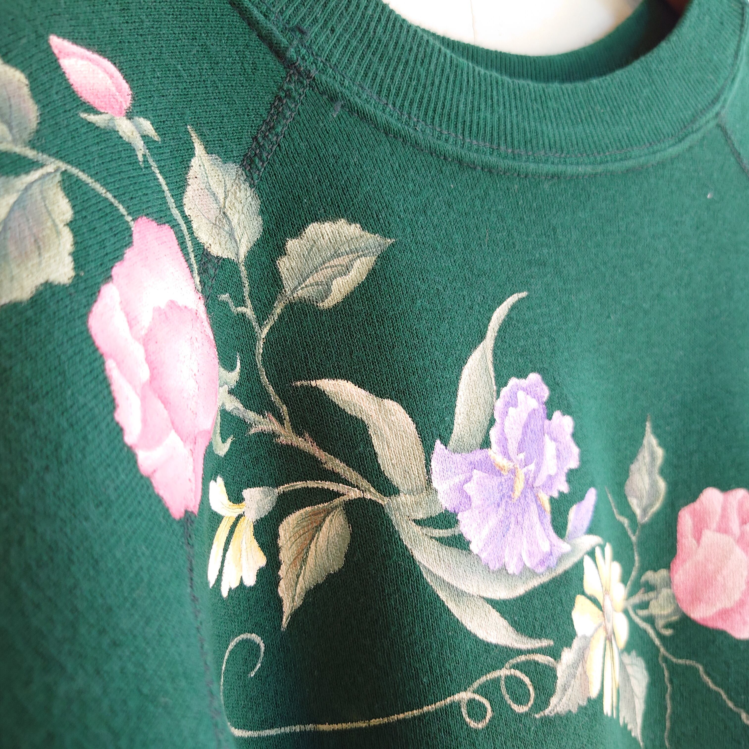 HANES 90s vintage 花柄 ヴィンテージスウェット アートスウェット デコレーションスウェット ラグランスリーブ 緑 XL USA製