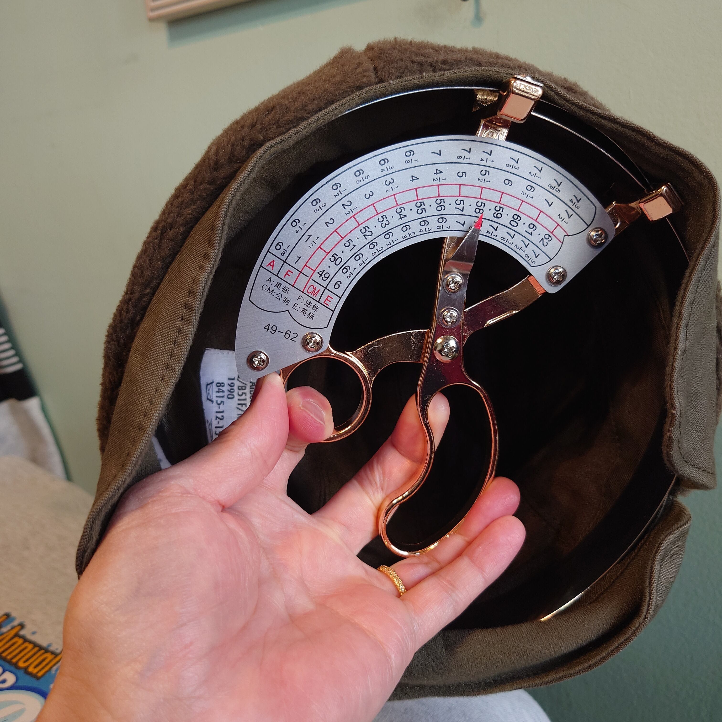 キャップゲージを使って内側を採寸しています。かぶり方や髪型で若干感じ方が異なる場合がございます。