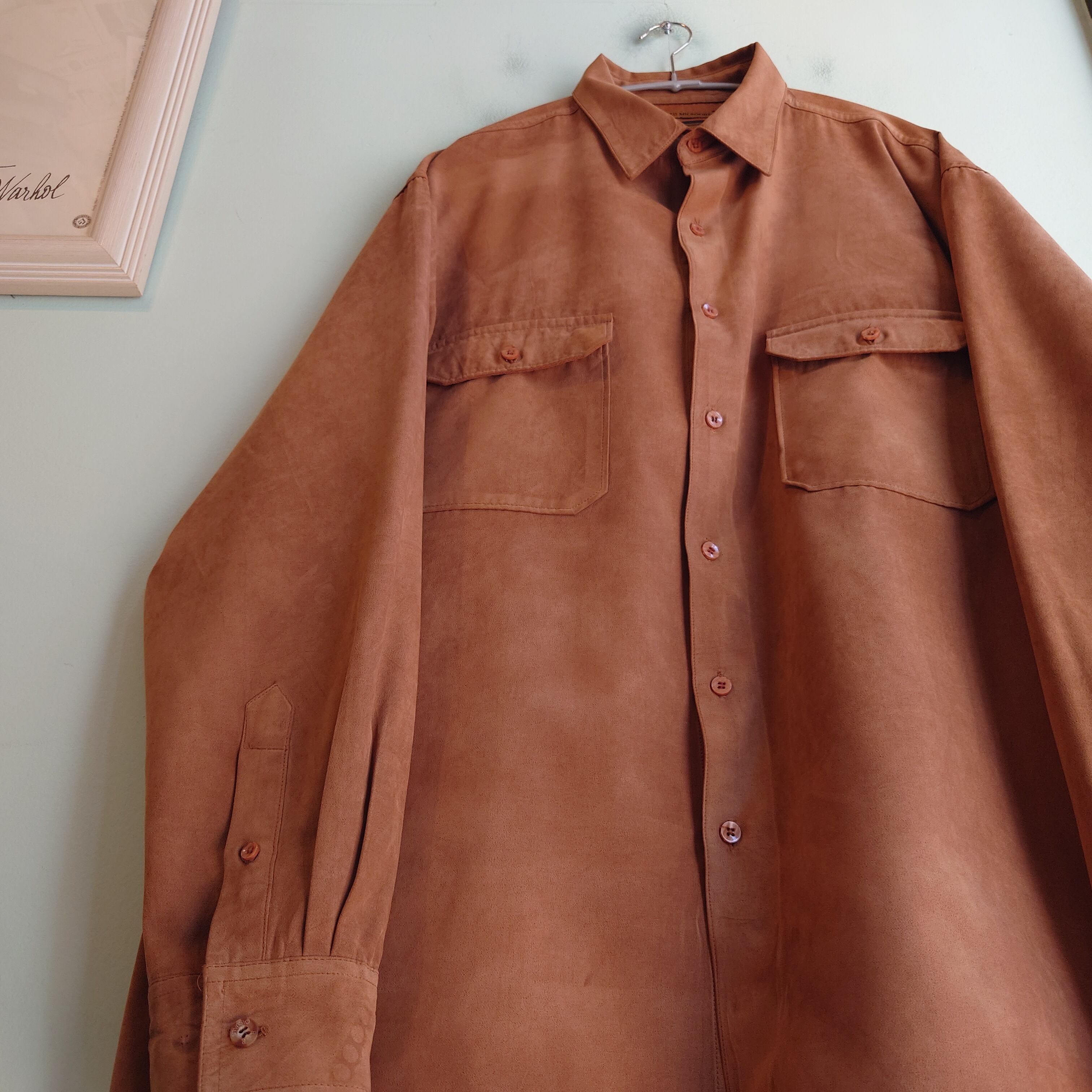 ◎BRUNO 90-00s フェイクスウェードシャツ ドレスシャツ キャラメル ブラウン L