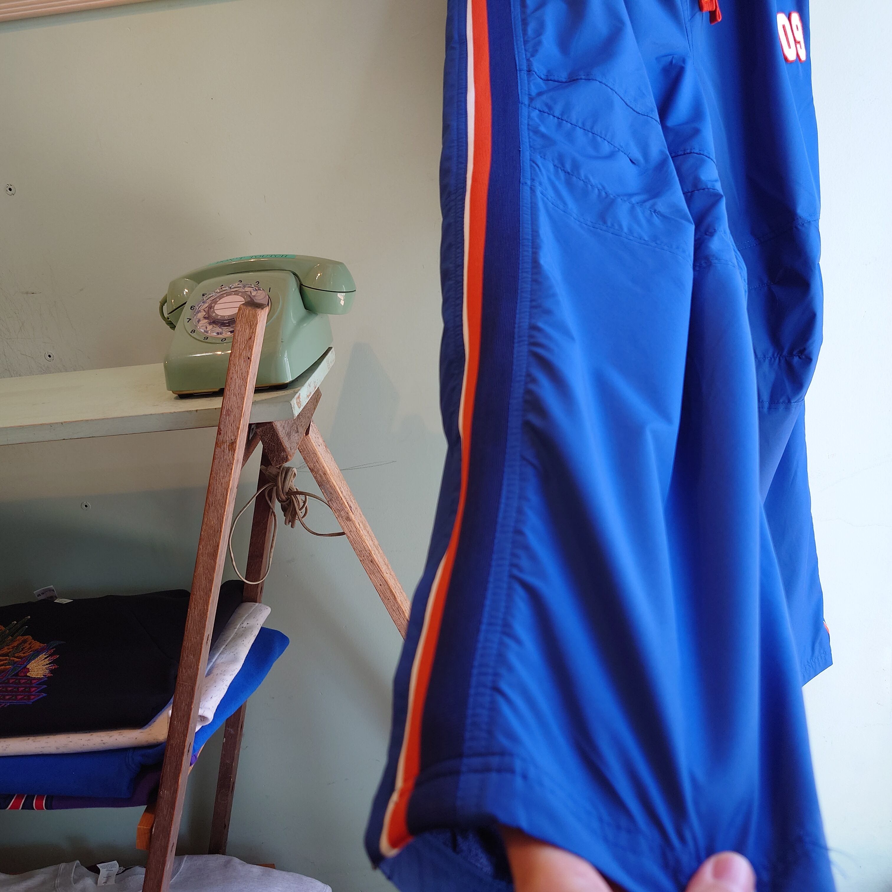 Athletic Works 00s サイドラインパンツ トラックパンツ ブルー×オレンジ ワイド ポリ素材 異素材 M