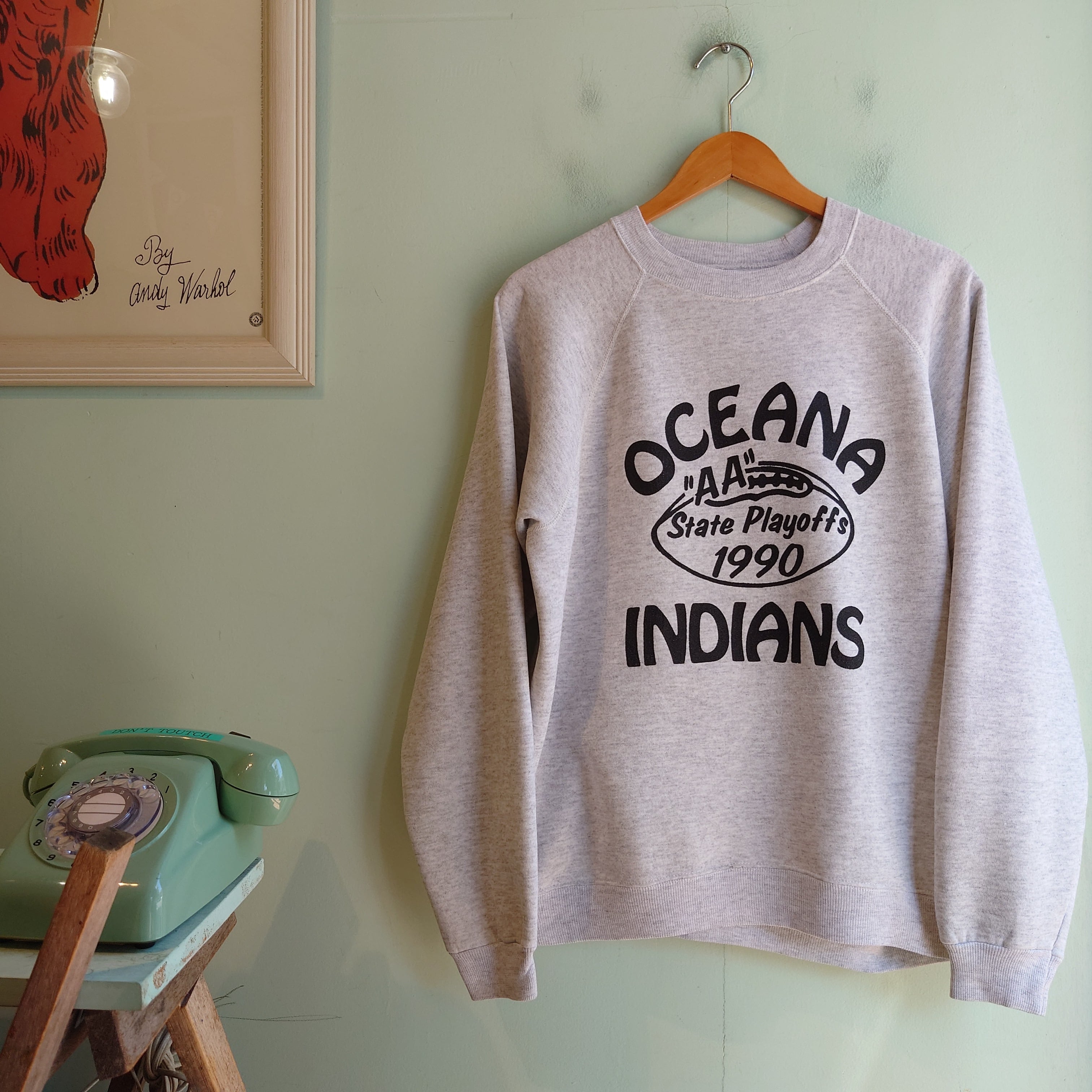 カレッジ/ハイスクール系のヴィンテージスウェット。ヘインズのオールド・ラグランスリーブボディーに、レトロなフォントが◎。味のある白杢に、モノトーンのシンプルさがかっこいい。誰が見てもかっこいい、ザ・古着らしい良さが溢れる1枚。