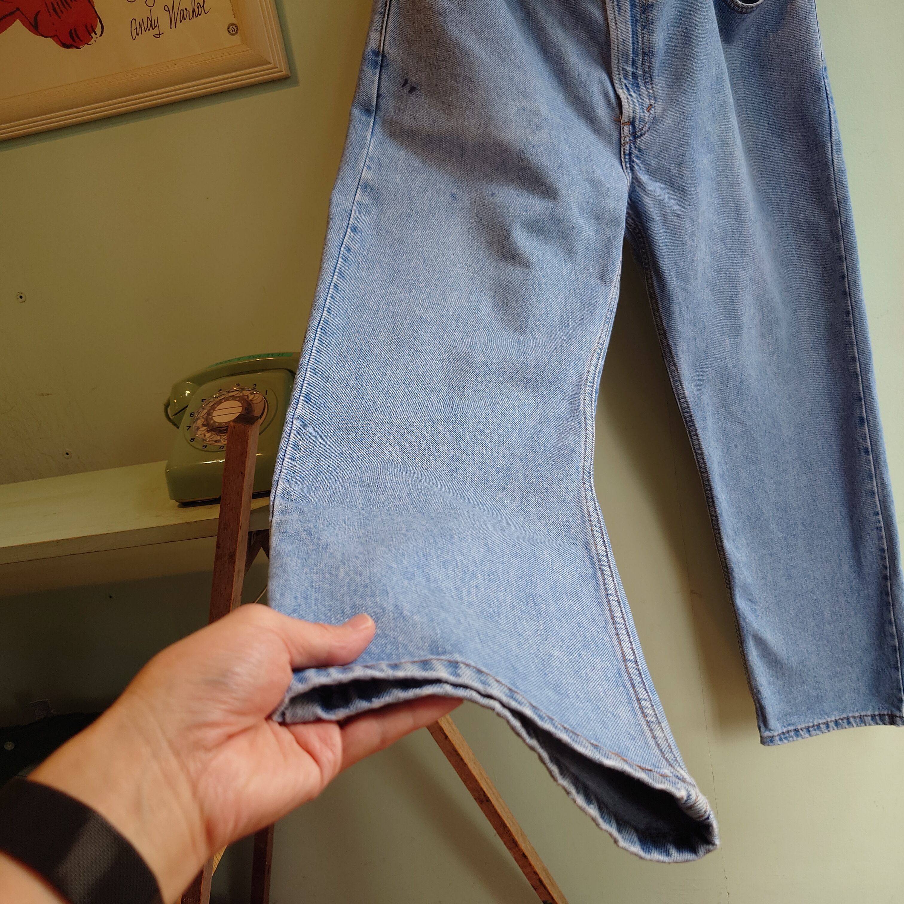 501と双極をなす、ジッパーフライの定番505。ほんのりテーパードのかかったストレートがあらゆるコーデに合わせやすい。こちらはウエストのワイド感に対してレングスが扱いやすいサイズ感で、よりテーパードを強めに感じる一本。オーバーサイズで履いた時のバギー感も秀越。ブリーチとクラッシュの味わいが絵になる雰囲気系。