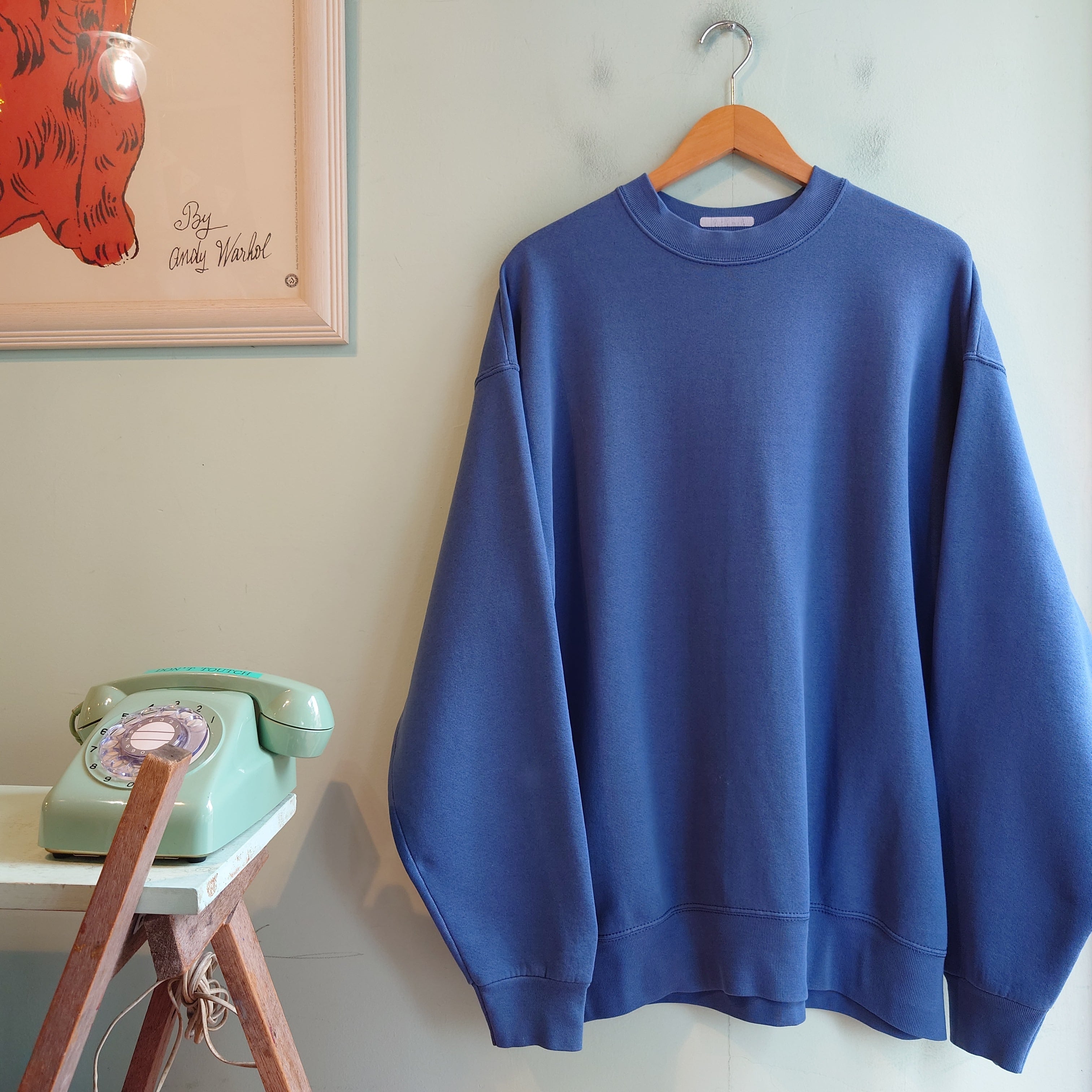 コロンと丸みのあるシルエットと柔らかな質感に惹かれる無地スウェット。ヴィンテージらしい丸さほんのりで、ストン落ちる感じもあるざっくり系。ブルーグレーの中性的な色合いで、青系の中でも特に合わせやすさ抜群。ボトムで遊んでカラフルなコーデから、大人っぽいコーデまで自在。