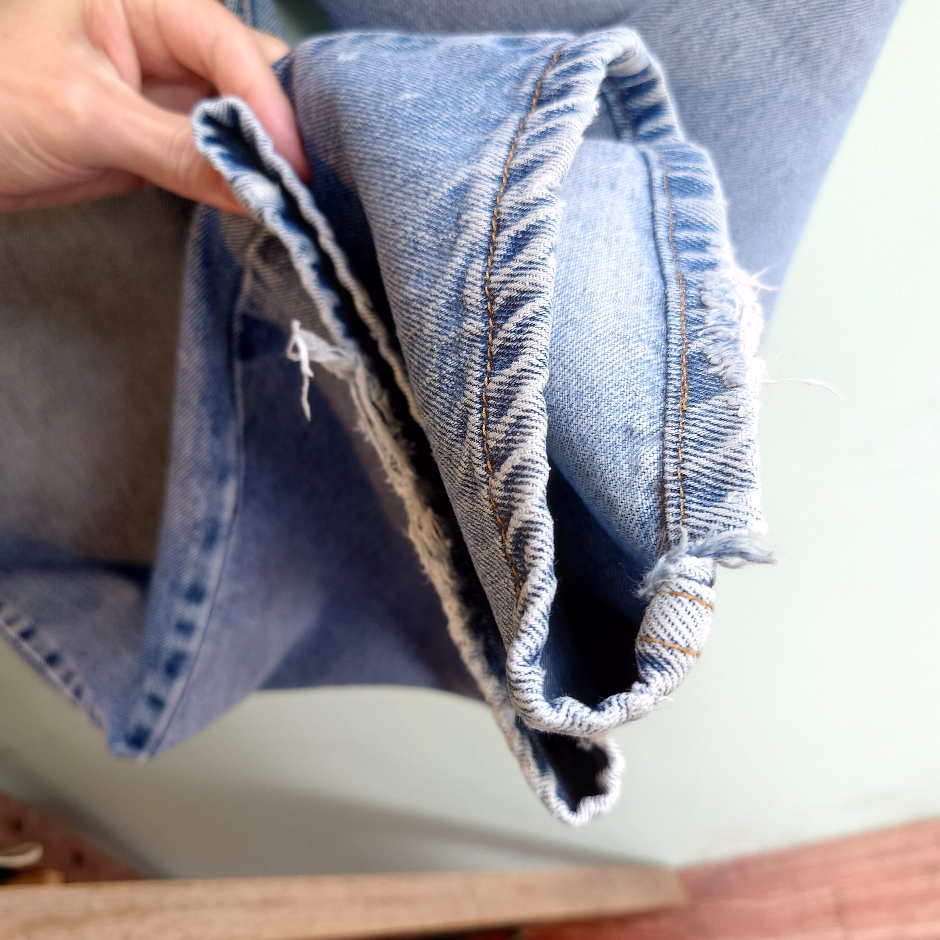 テーパードジーンズの定番、リーバイス550リラックスフィット。550よりもウエストからボリューミー、オーバーサイズのトップスも合わせやすく、冬のアウタースタイルにも自然にマッチする一本。アイスブルー寄りながら、濃い部分もわずかにのこり、ちょうどよい雰囲気の一本。