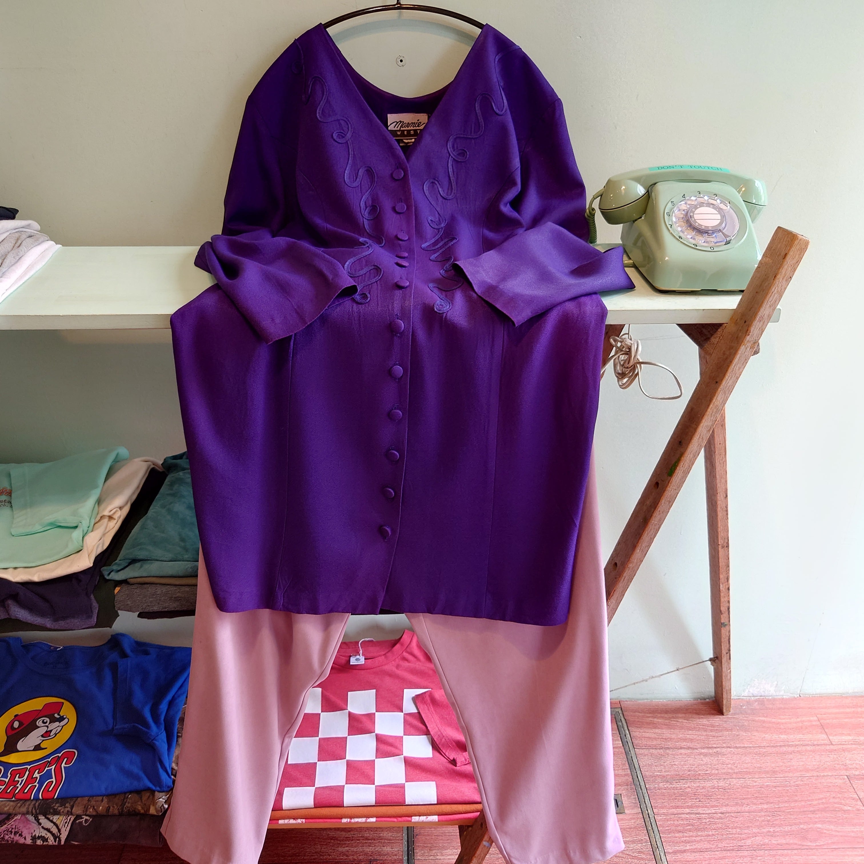 Marnie WEST 80-90s vintage ヴィンテージドレス シャツワンピース カーディガンドレス チュニック 紫 usa製