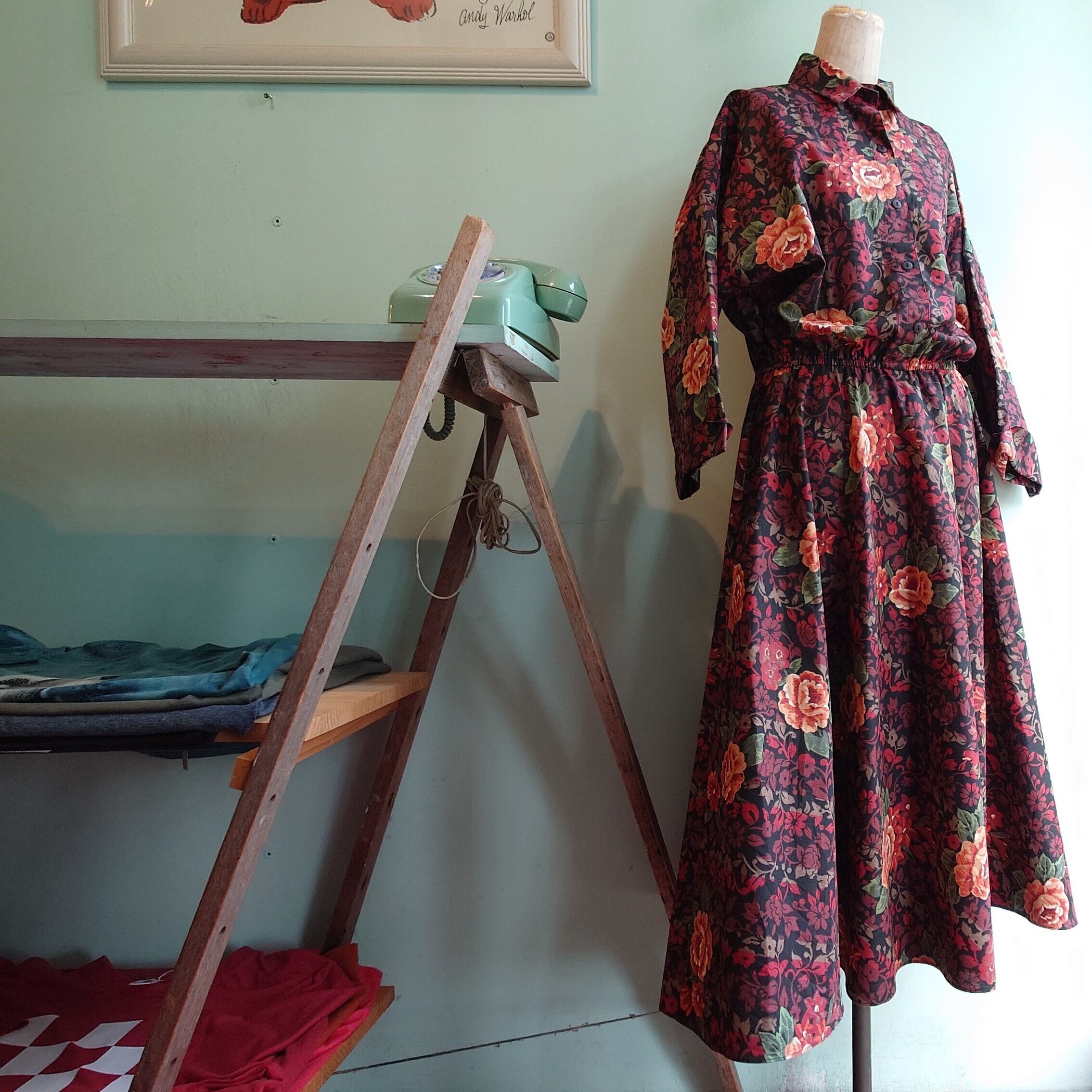 ◎the american shirt dress 80-90s vintage ヴィンテージドレス 総柄ワンピース 花柄 usa製 タグ付き deadstock