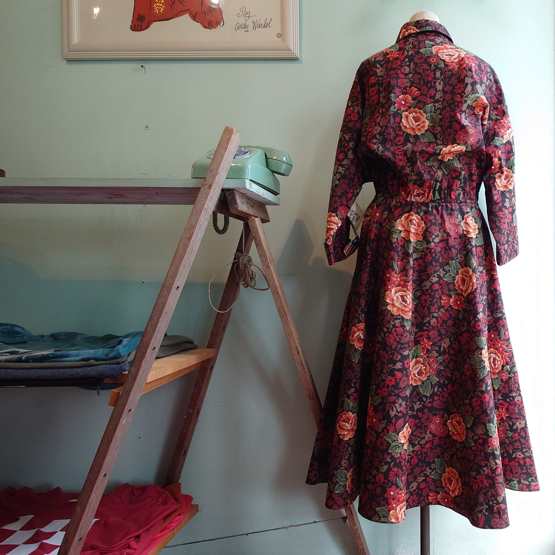 the american shirt dress 80-90s vintage ヴィンテージドレス 総柄ワンピース 花柄 usa製 タグ付き deadstock